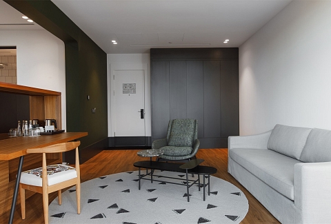В номере: вешалка, зеркало, кресло, кровать двуспальная, стол, стул, шкаф, гладильная доска, кондиционер, мини-холодильник, сейф, телевизор, телефон, утюг, чайная станция
