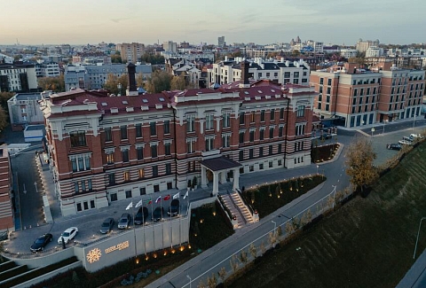 Cамолетом до аэропорта г. Казань, далее на рейсовом автобусе №197 до остановки «Метро Проспект Победы», далее на метро до станции «Суконная слобода», далее пройти пешком 920 м до отеля.