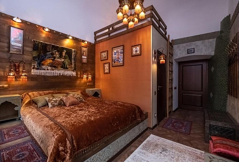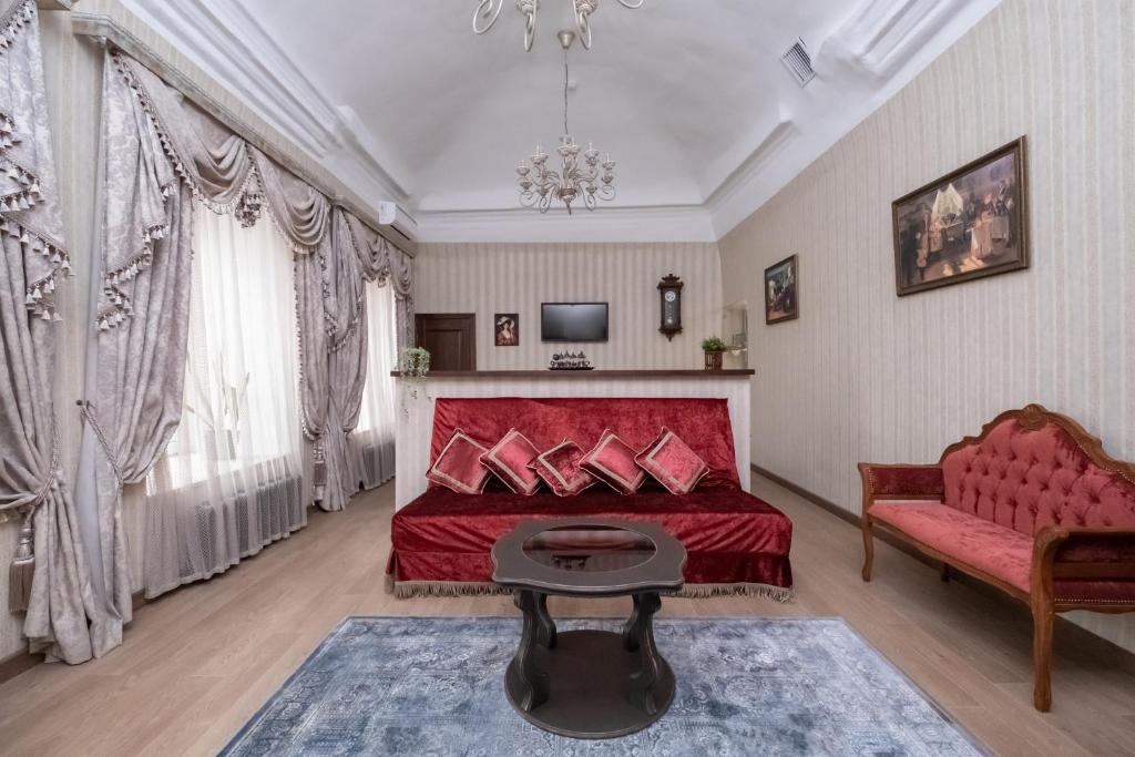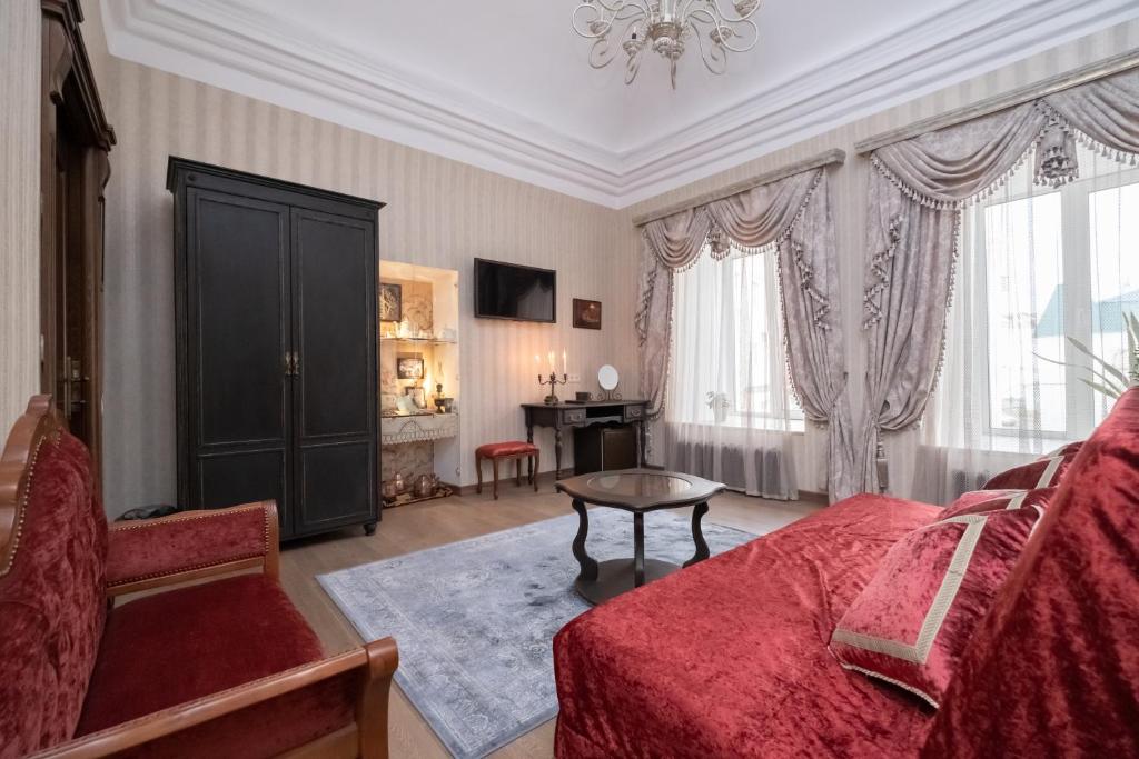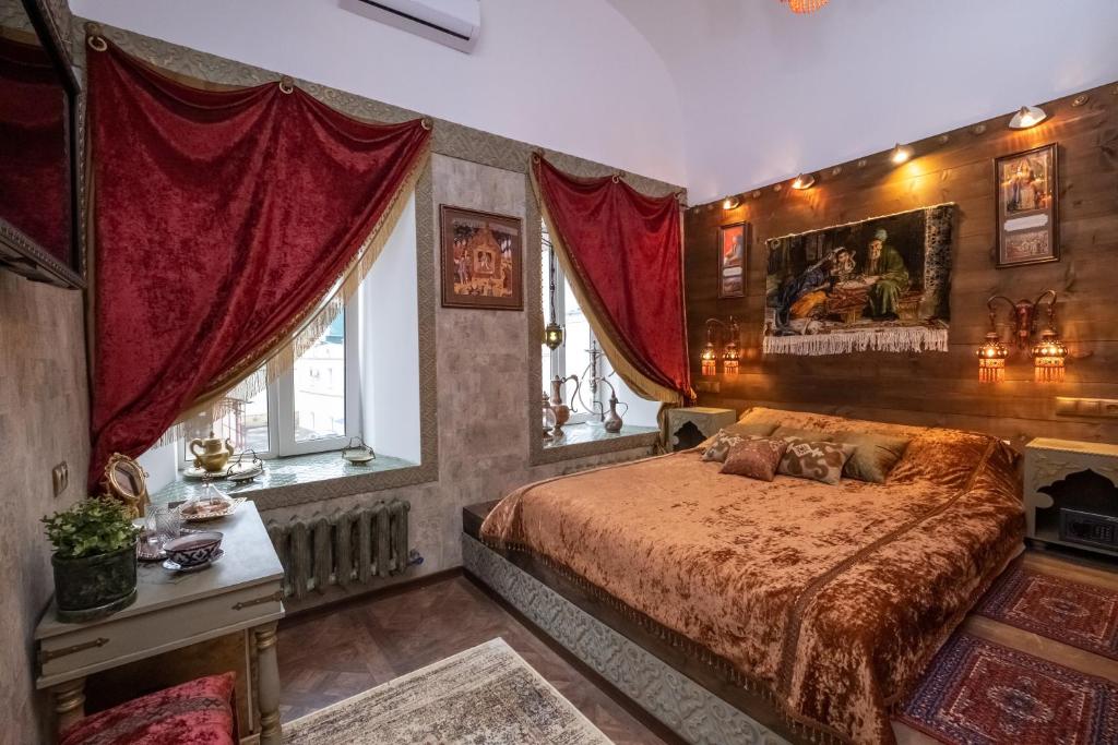 В гостинице всего 6 номеров, однако, в каждом прослеживается свой индивидуальный стиль и атмосфера. В таких номерах гости могут почувствовать себя дворянам, татарскими ханами или богатыми купцами. Помимо оригинального интерьера, номера отличаются хорошей оснащенностью: везде есть ванная комната, кондиционер, телевизор, фен, электрочайник и беспроводной интернет. В отеле даже есть номер с оборудованной мини-кухней.На первом этаже здания работает кафе с кулинарией, где отдыхающие могут продегустировать блюда и выпечку татарской кухни. В теплое время года перед отелем открыта летняя веранда.