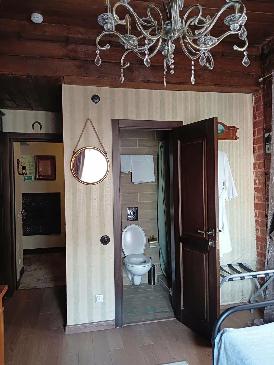 Санузел: с душем, тапочки, туалетные принадлежности, фен