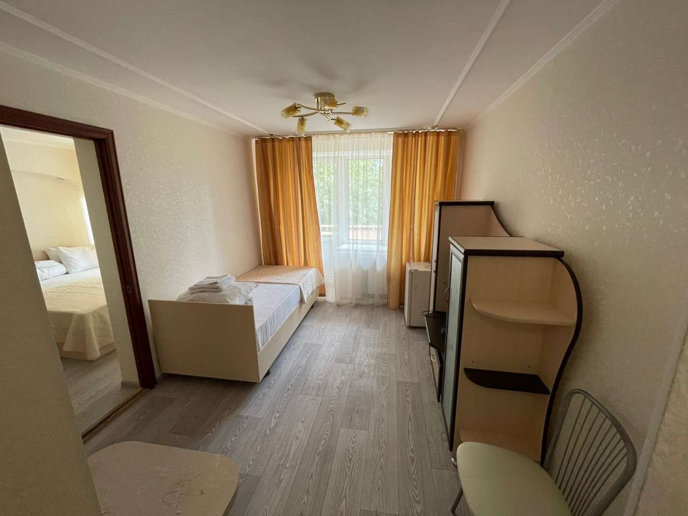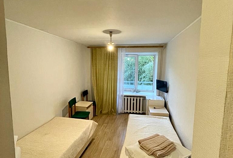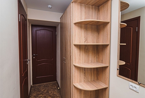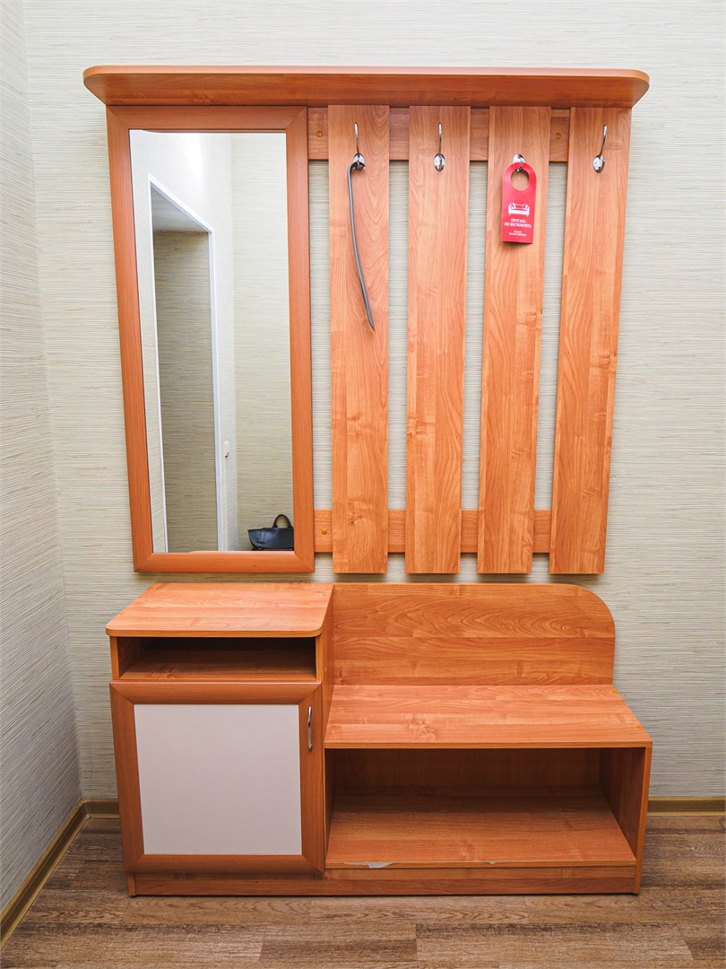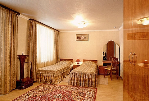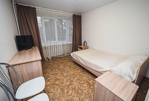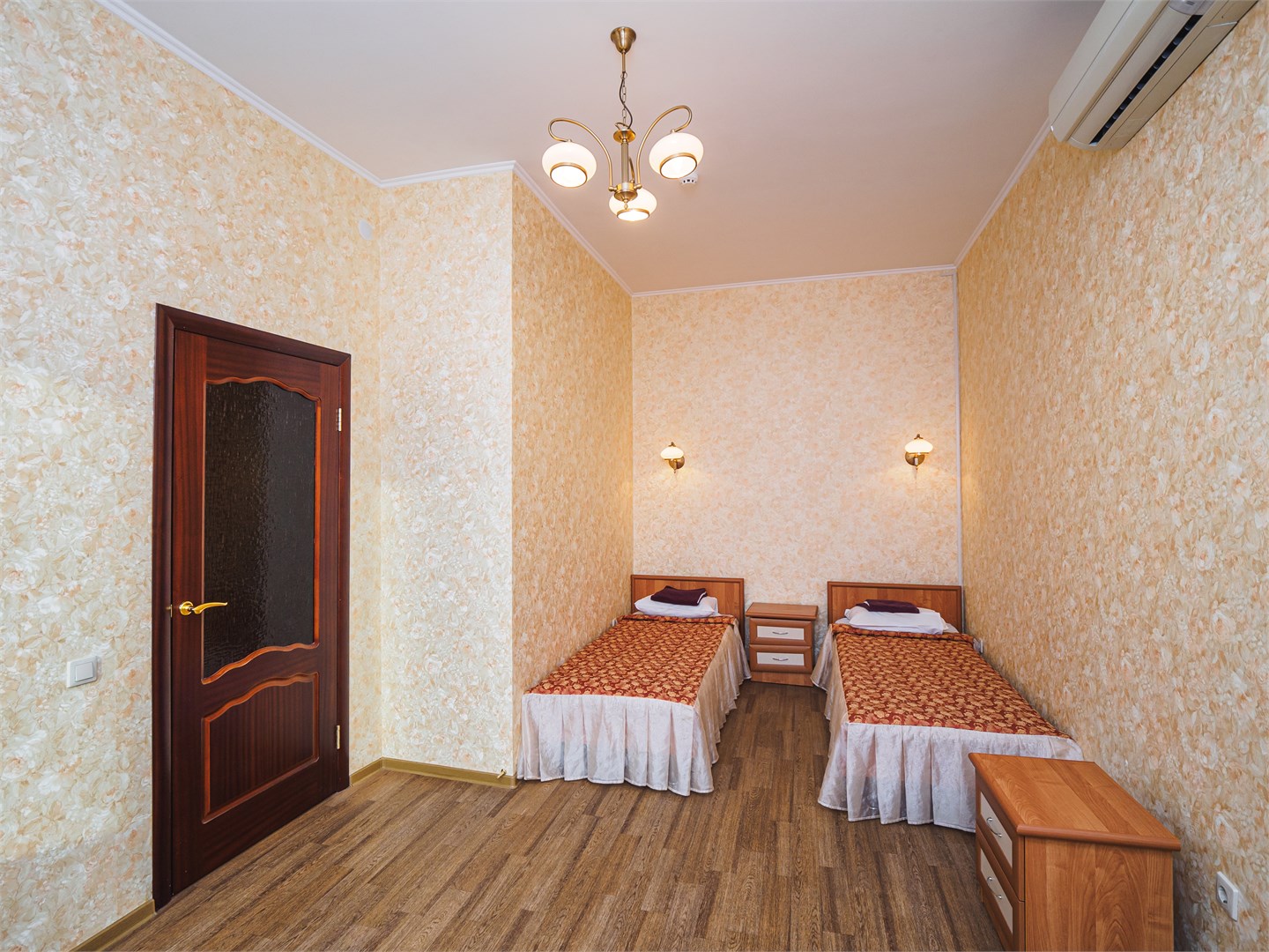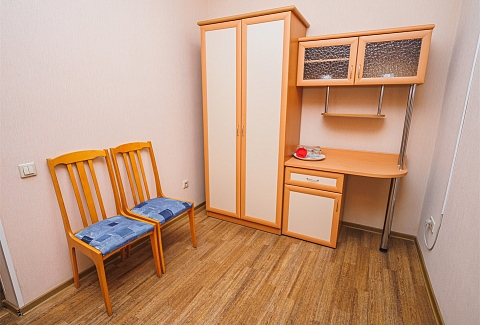 В номере: вешалка, зеркало, кровати односпальные, прикроватные тумбочки, столик журнальный, стулья, шкаф, мини-холодильник, телевизор ЖК
