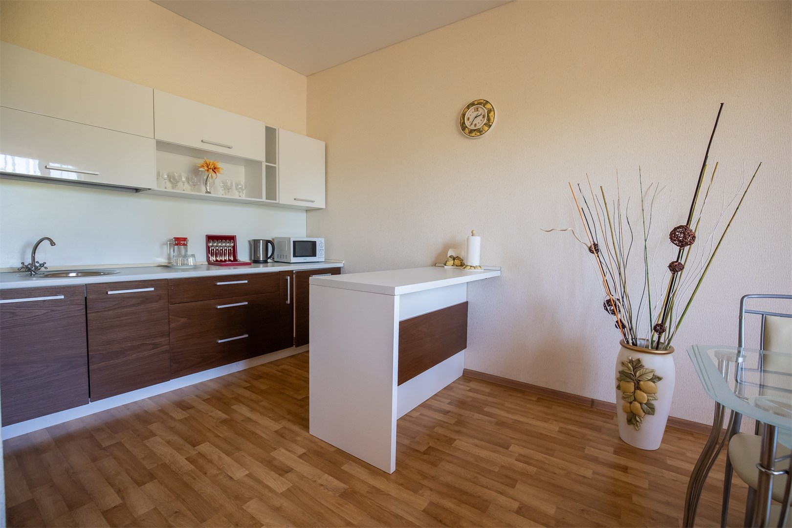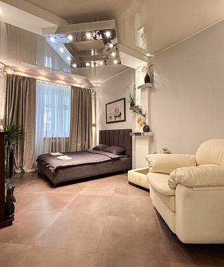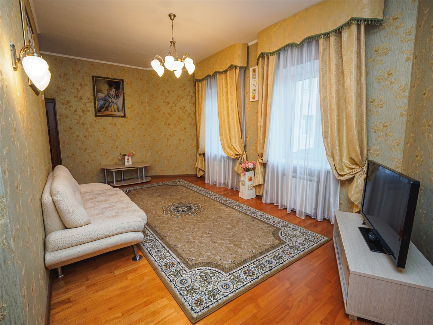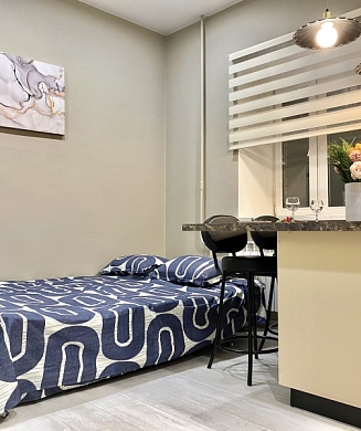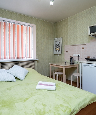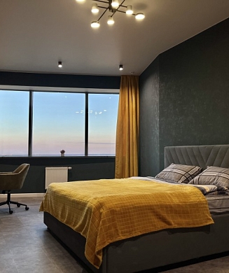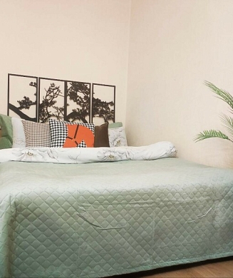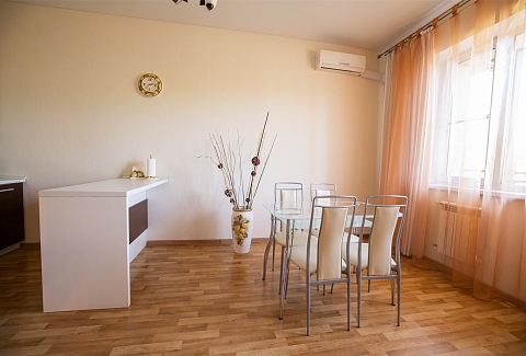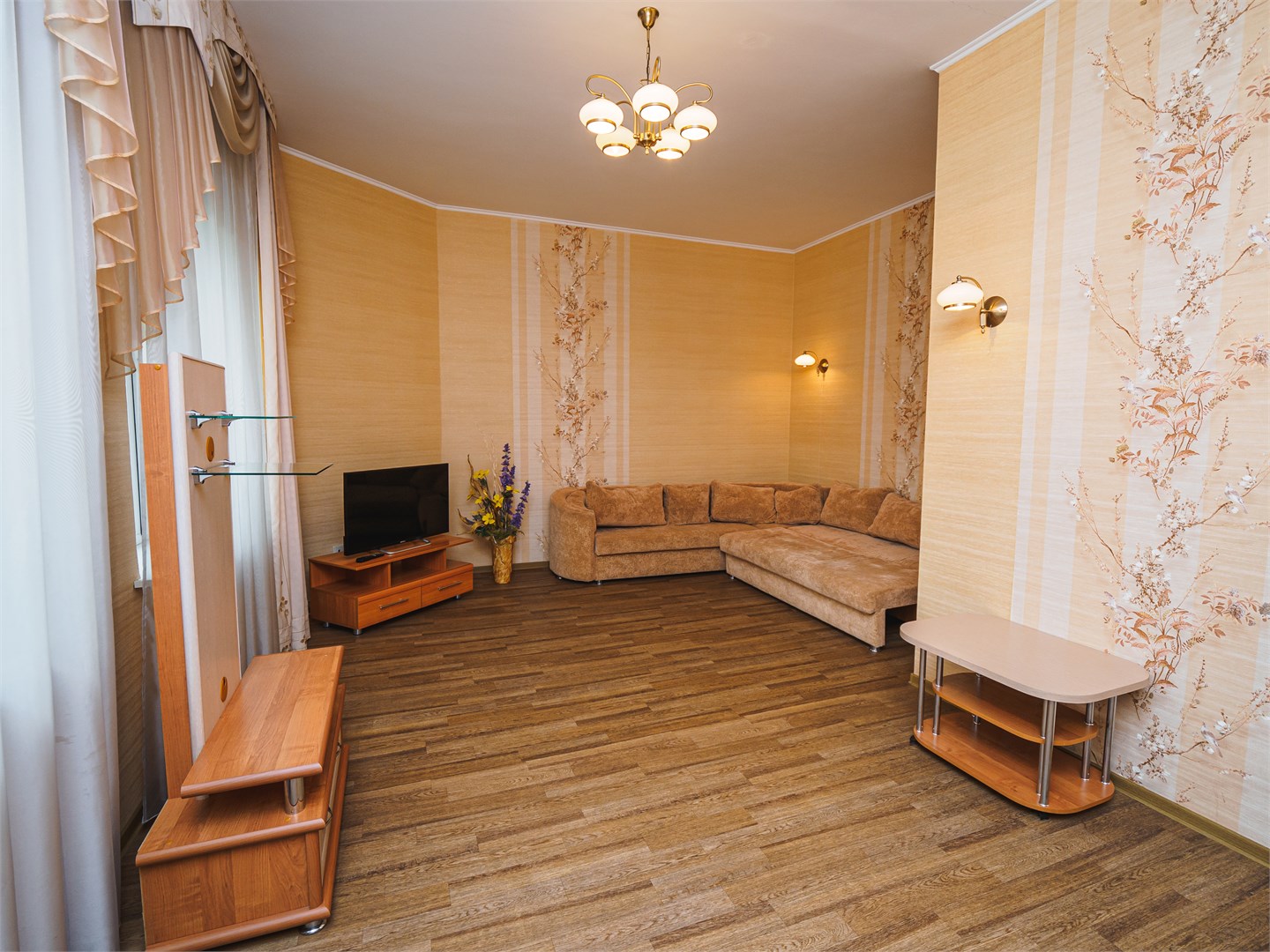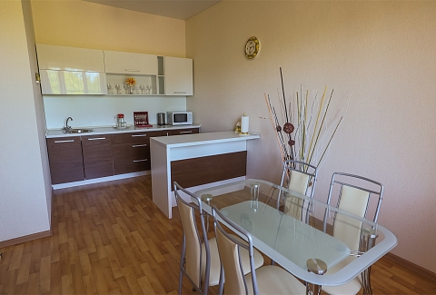 В номере: вешалка, диван, зеркало, комод, кровать двуспальная, прикроватные тумбочки, стол, стулья, шкаф, мини-холодильник, набор посуды, телевизор ЖК