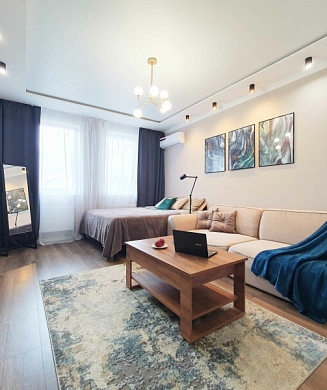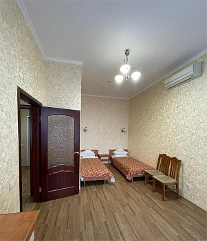 В номере: вешалка, диван, зеркало, комод, кровати односпальные /одна двуспальная кровать, прикроватные тумбочки, столик журнальный, стулья, шкаф, кондиционер, мини-холодильник, телевизор ЖК, чайный набор посуды, электрочайник