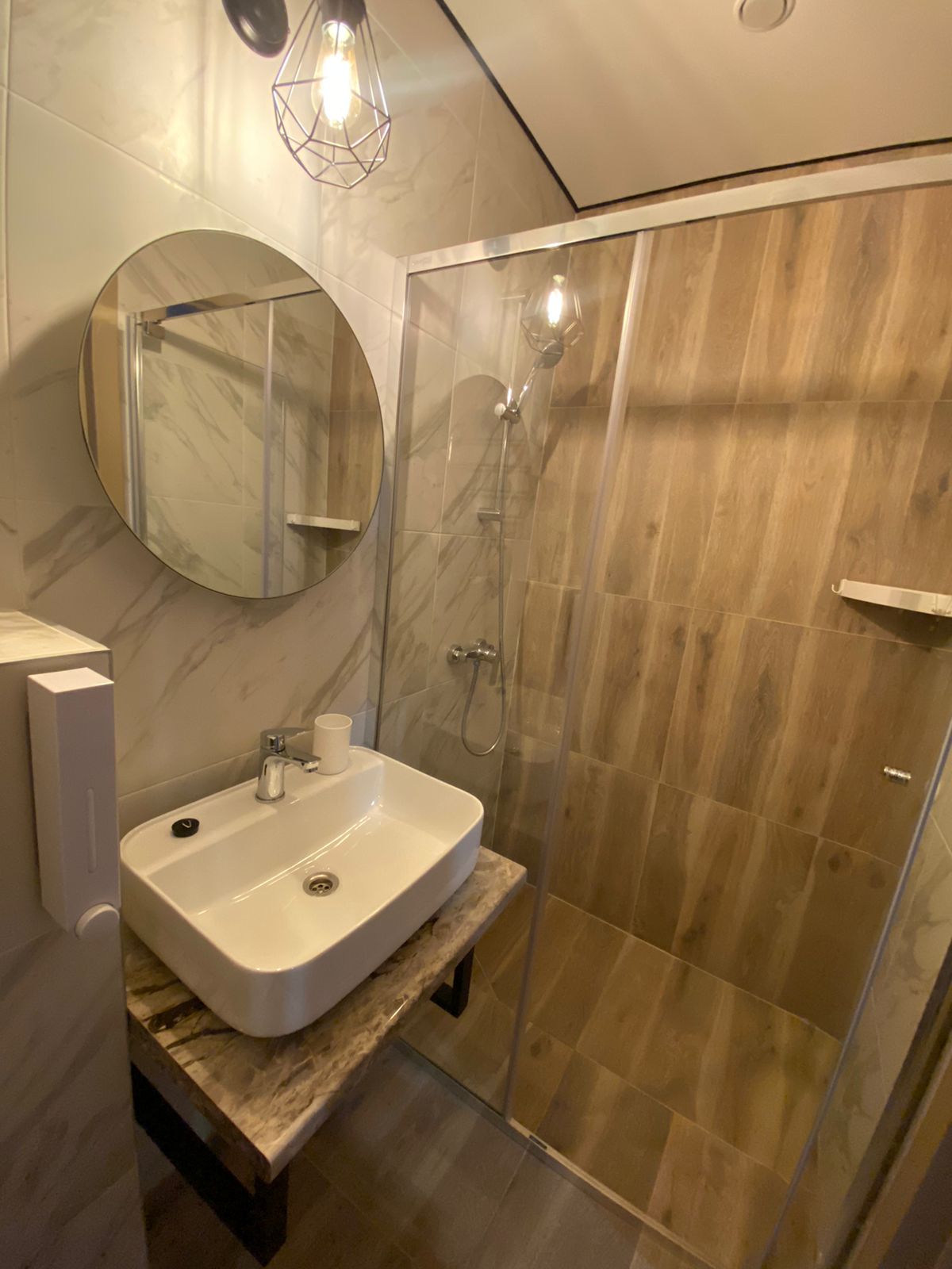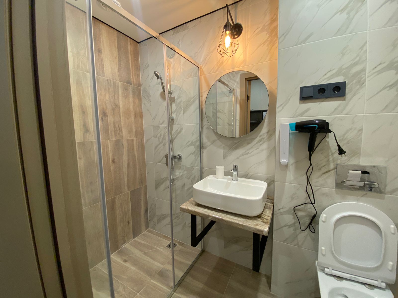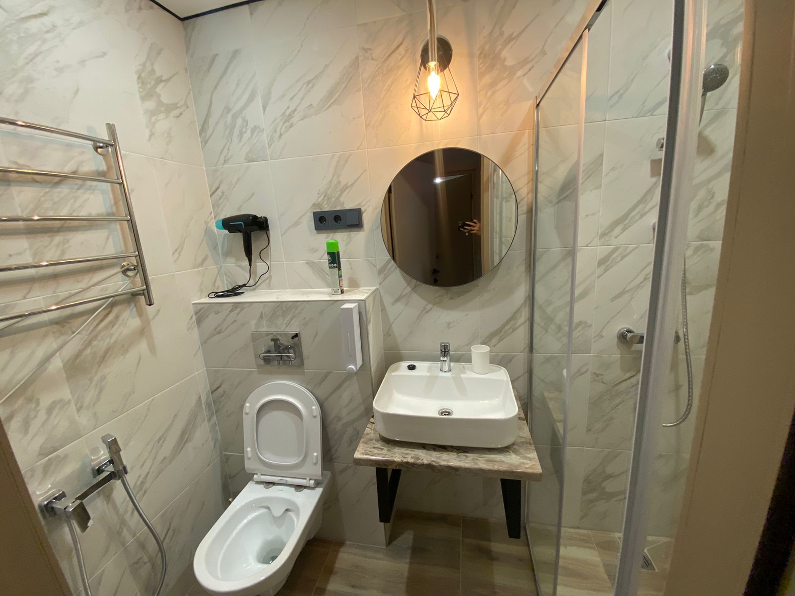 Санузел: с душевой кабиной, туалетные принадлежности, фен