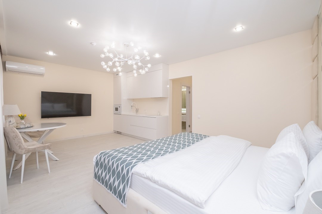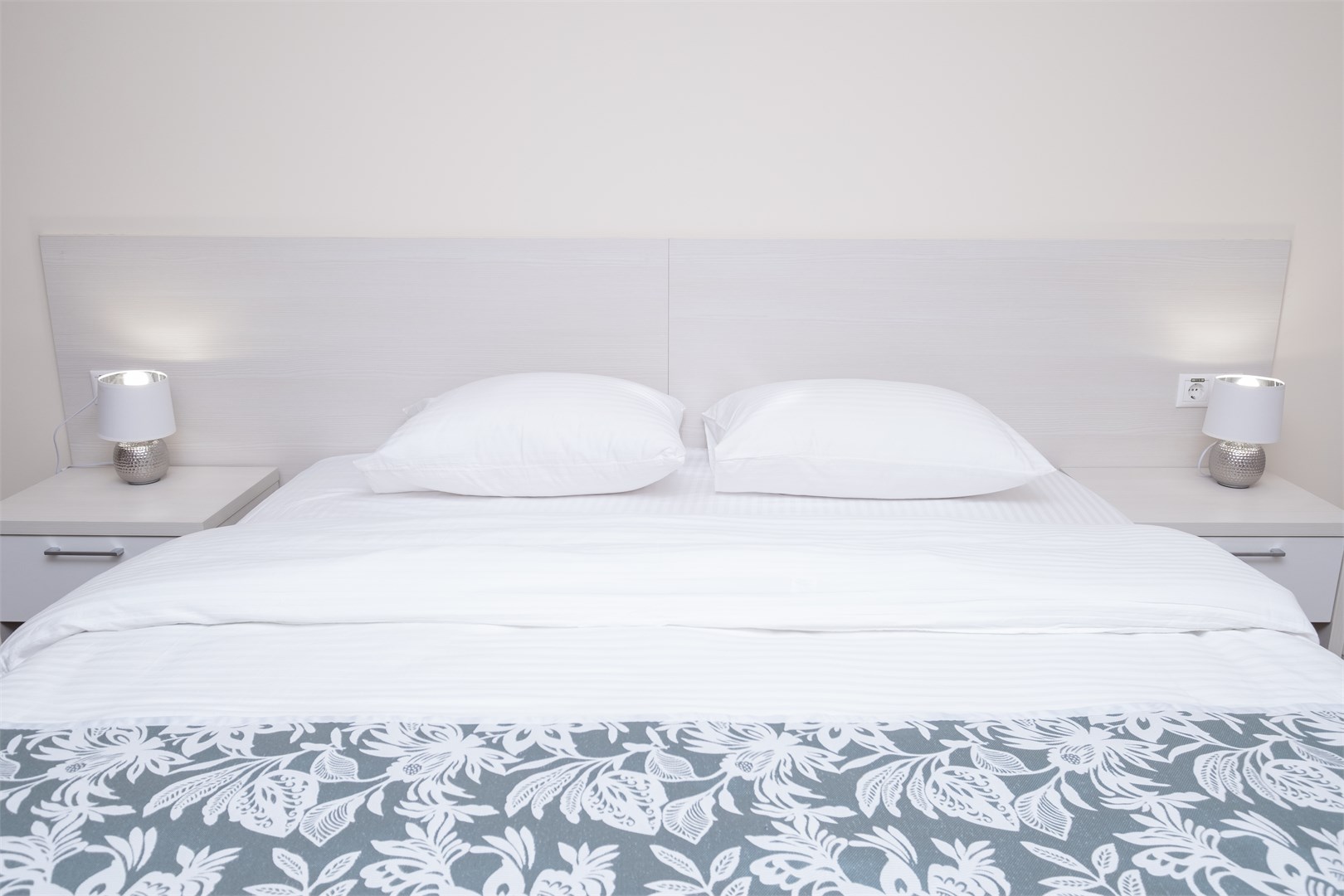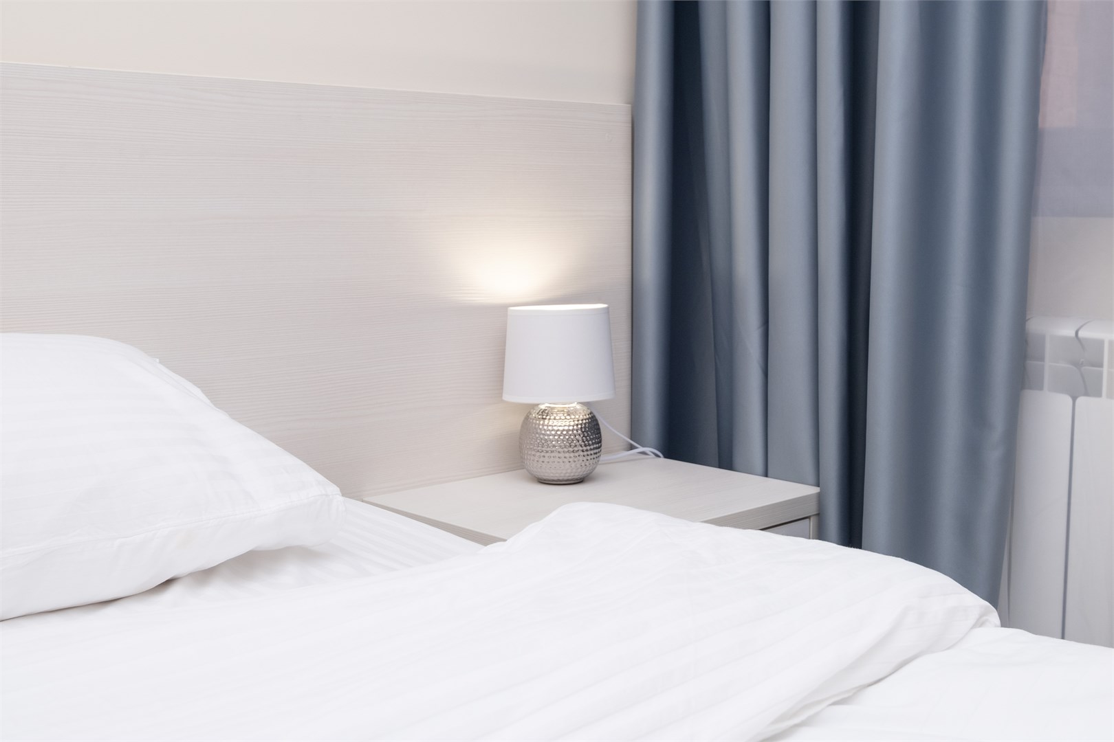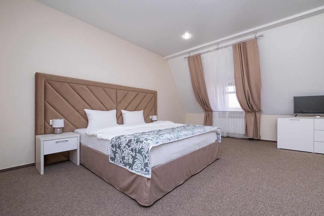 В номере: кровать двуспальная, прикроватные тумбочки, стол, стулья, шкаф, кондиционер, мини-холодильник, сейф, телевизор, телефон, чайная станция