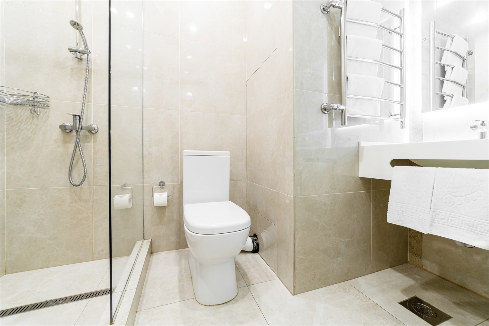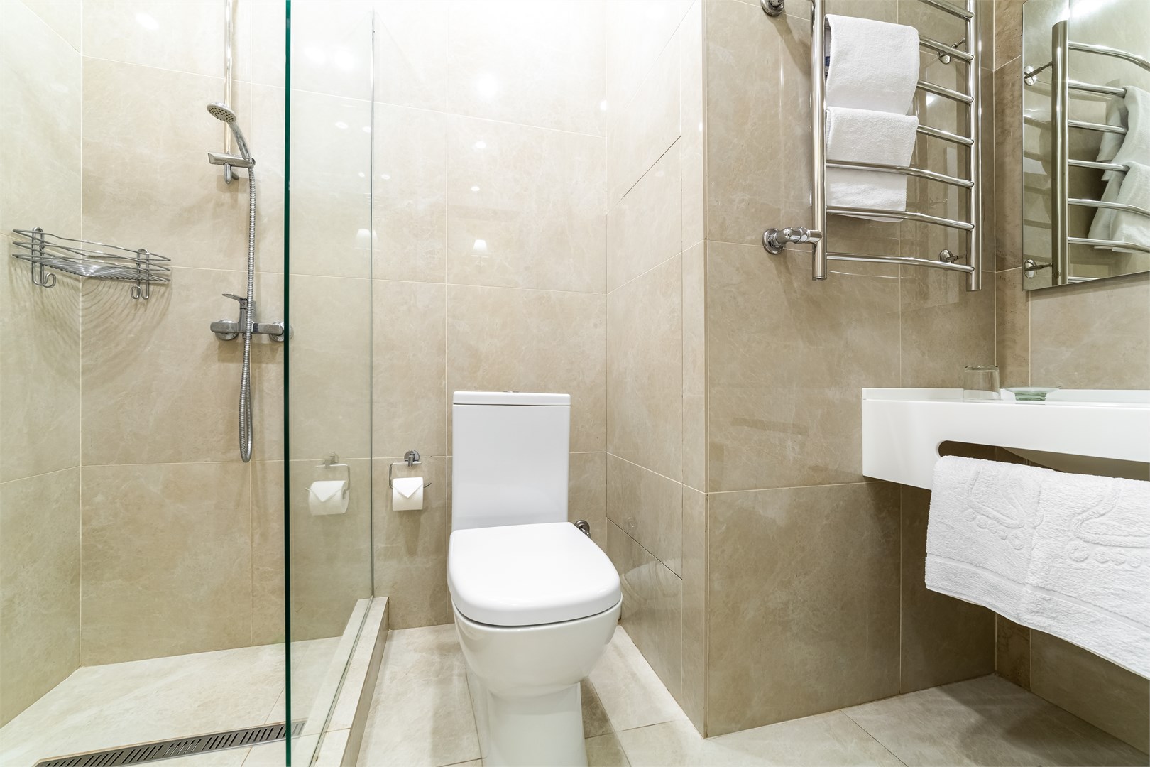 Санузел: с душевой кабиной, туалетные принадлежности, фен