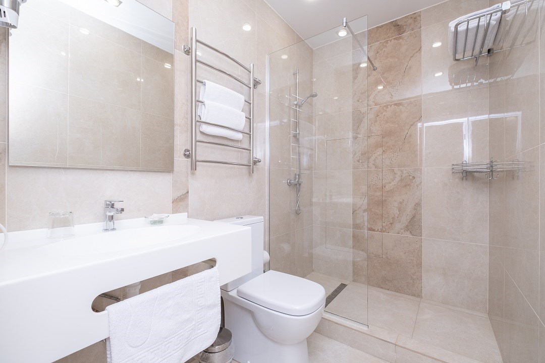 Санузел: с душем, тапочки, туалетные принадлежности, фен