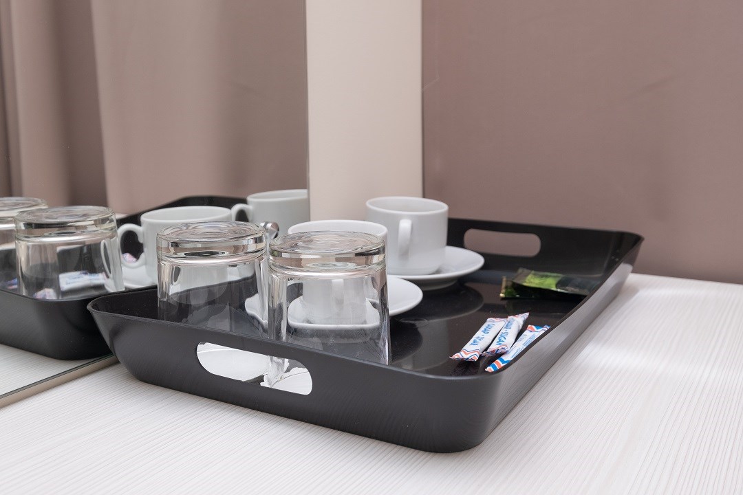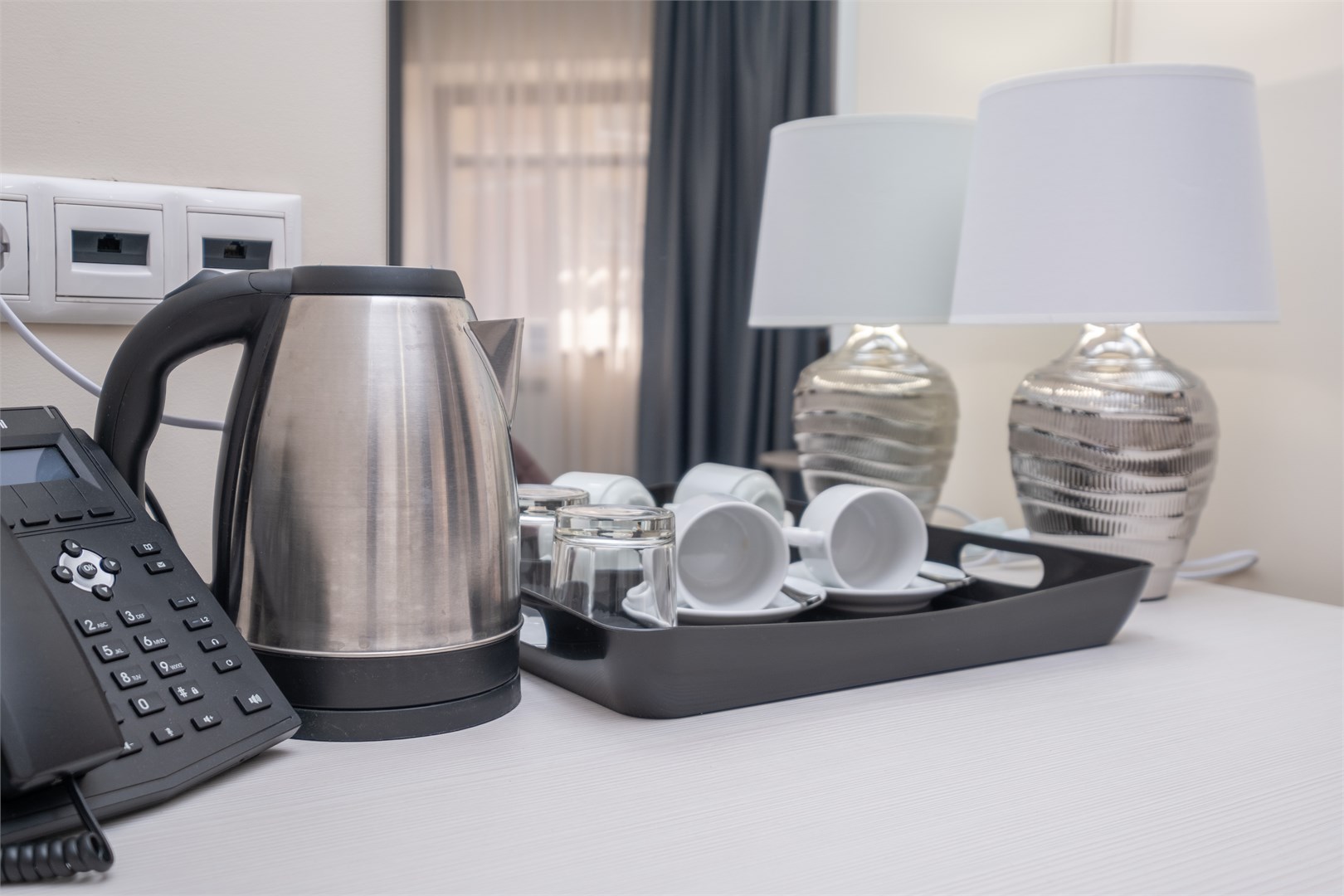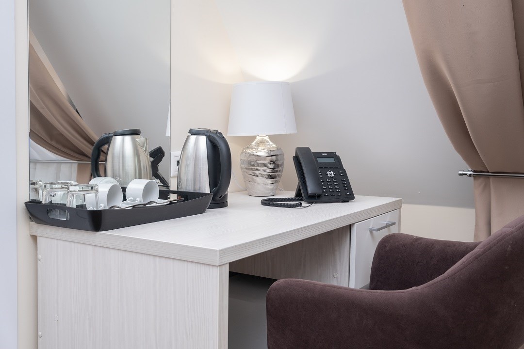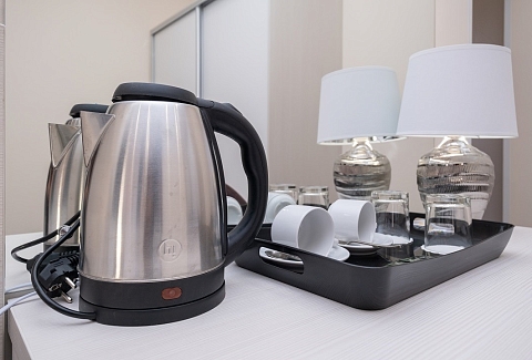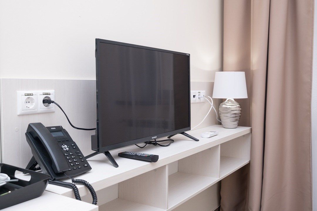 В номере: кровати односпальные, прикроватные тумбочки, стол, стулья, шкаф, кондиционер, мини-холодильник, сейф, телевизор, телефон, чайный набор посуды