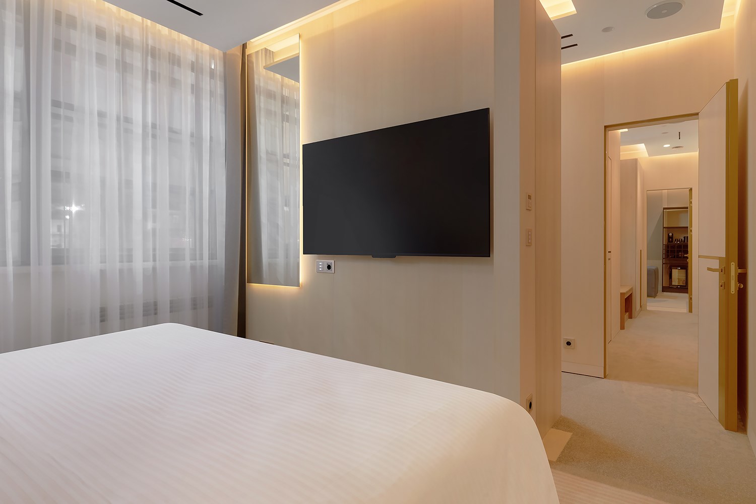 В номере: кровать двуспальная, набор мягкой мебели, стол, стулья, шкаф, камин, кондиционер, кофемашина, микроволновая печь, сейф, телевизор, телефон, холодильник, чайная станция