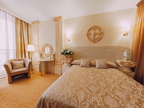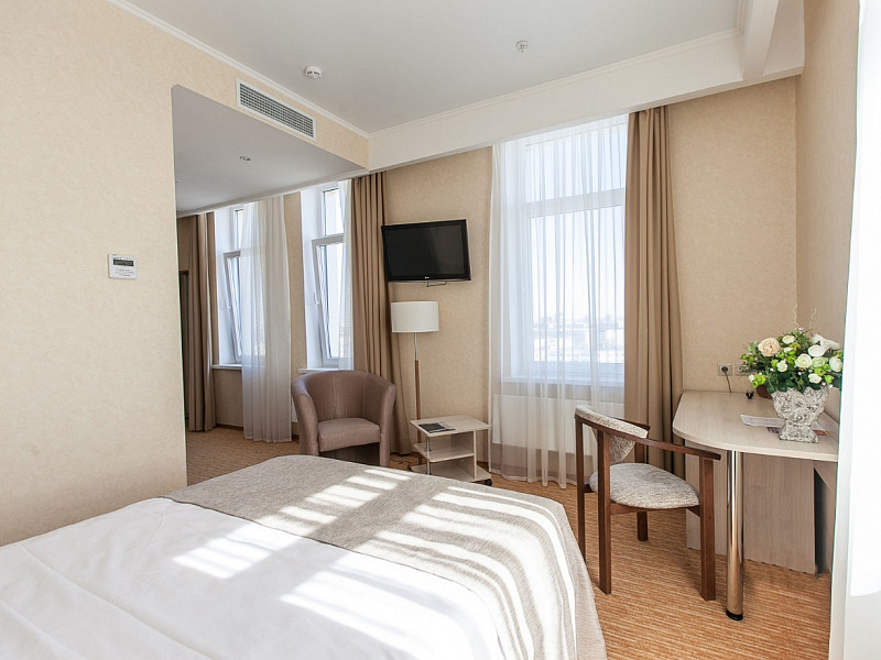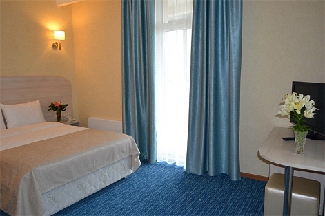 Гостей ожидают номера разных категорий от Стандарта до Люкса. В номерах стильный интерьер, выдержанный в светлой цветовой гамме. Все комнаты оснащены санузлом с душем или ванной и необходимой техникой — телевизором-ЖК, кондиционером, холодильником. В номерах Люкс — резная мебель, а в интерьере прослеживаются мотивы Греческого искусства.В отеле работает ресторан, где гости могут заказать завтрак. Отдыхающим доступны услуги прачечной, беспроводной интернет, перед корпусом организована охраняемая автостоянка, для детей администрация отеля предоставляет кроватки-манежи. Деловые мероприятия можно провести в оборудованном конференц-зале, рассчитанном на 100 гостей.