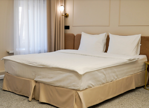 В номере: вешалка, зеркало, кровать двуспальная/ две полутороспальные кровати, прикроватные столики, стол, стул, шкаф, гладильная доска, кондиционер, мини-холодильник, сейф, утюг, электрочайник