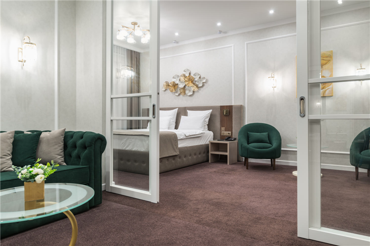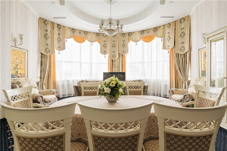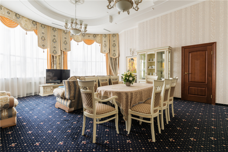 В номере: вешалка, диван, зеркало, кресла, кровати односпальные, кровать двуспальная, набор мягкой мебели, прикроватные тумбочки, стол, столик журнальный, стулья, шкаф, духовой шкаф, микроволновая печь, плита электрическая, посудомоечная машина, сейф, система общего кондиционирования, телевизор ЖК, холодильник, электрочайник