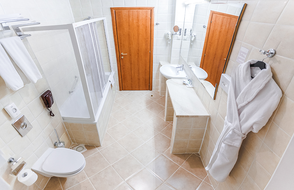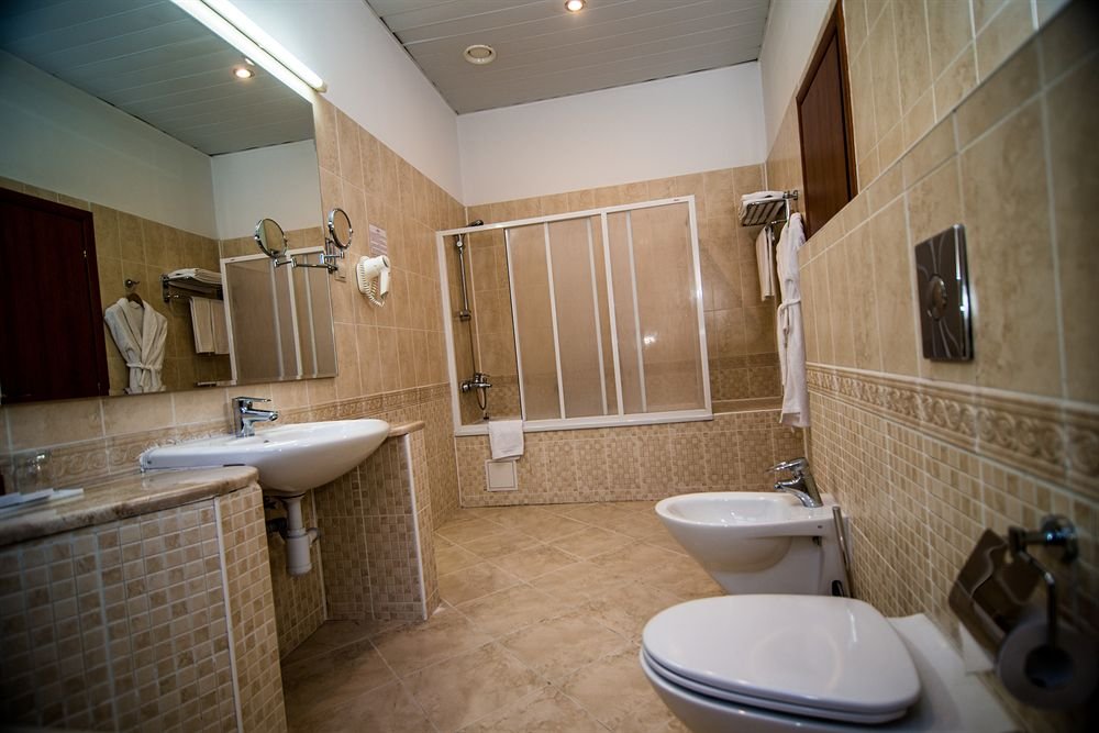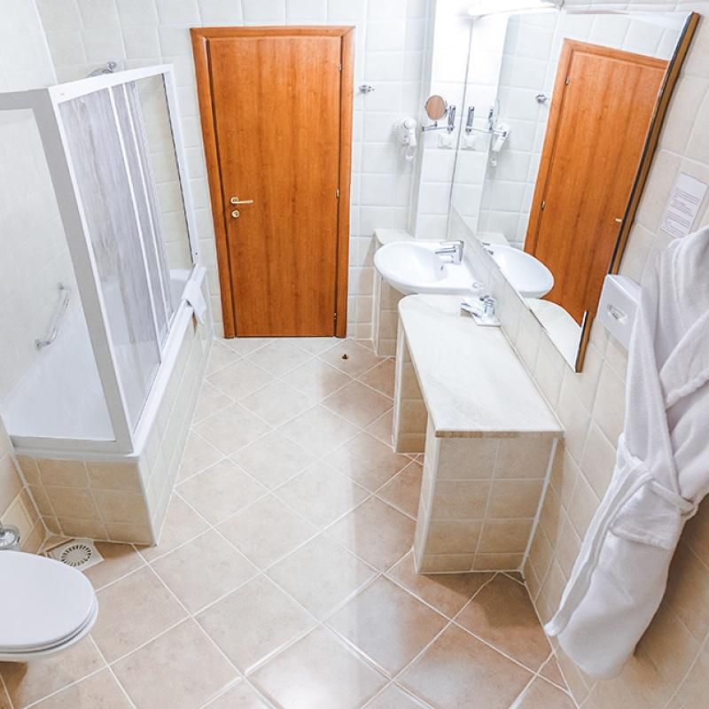 Санузел: с ванной, тапочки, туалетные принадлежности, фен, халат