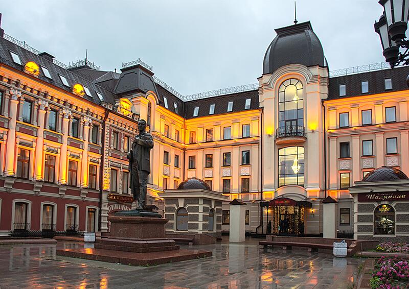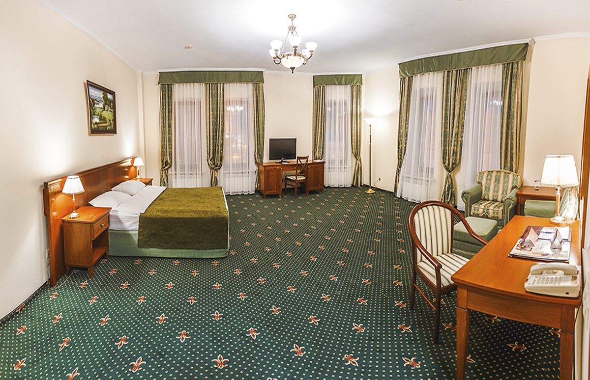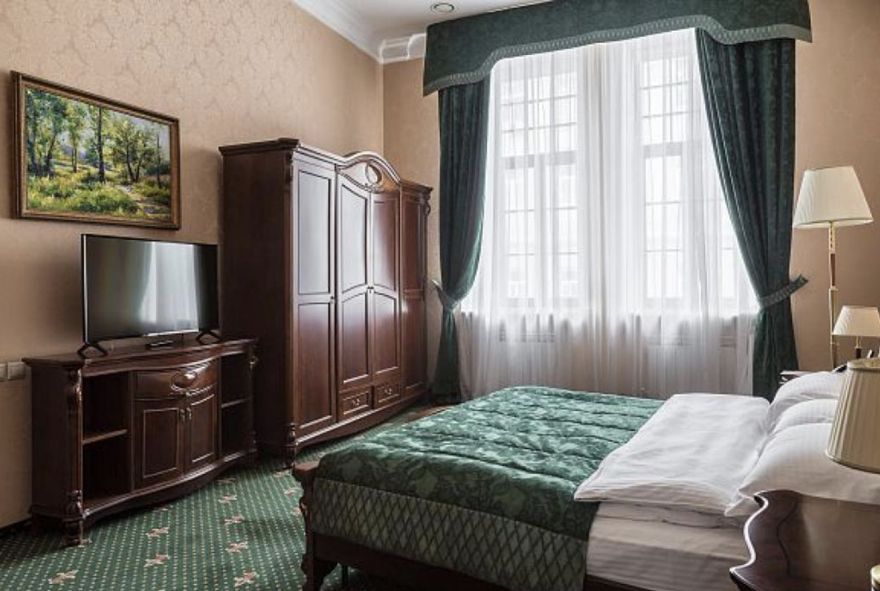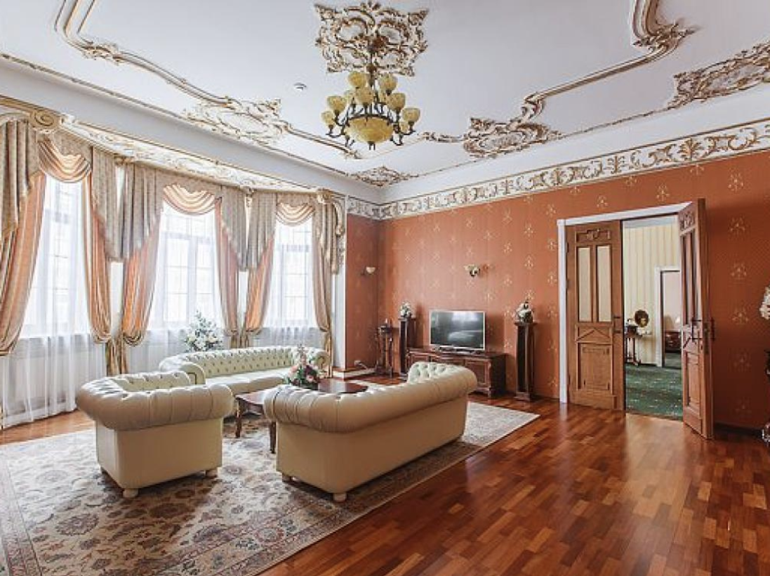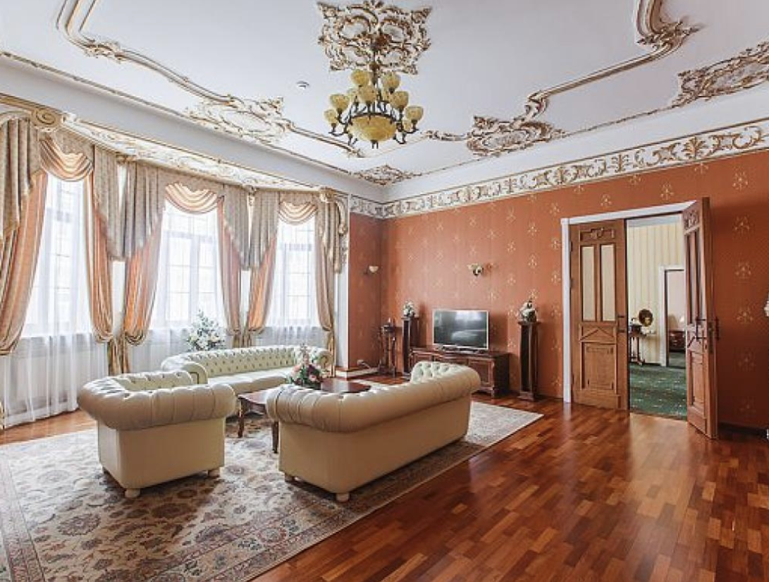 До главного железнодорожного вокзала Казани около 3 километров, а до международного аэропорта — 26.Отель разместился на закрытой благоустроенной территории в четырехэтажном историческом особняке с мансардным этажом. Гостей ожидают 123 двухместных номера категории Стандарт и Джуниор Сьют. Интерьеры номеров выдержаны в классическом стиле, каждая комната укомплектована качественным мебельным гарнитуром и необходимой техникой. В просторных санузлах установлены ванные, гостей ожидают традиционные наборы косметических принадлежностей. При отеле работают ресторан «Капелла» на 100 посадочных мест и уютный «Piano Bar», торжественные мероприятия, банкеты, можно провести в Зимнем саду. На первом и втором этажах отеля располагается современный фитнес-центр с тренажерным залом, сауной и бассейном, в центре регулярно проходят занятия с инструкторами. В распоряжении гостей беспроводной интернет, парковка, на ресепшене можно заказать трансфер, вызвать такси или приобрести экскурсии и билеты в театры и музеи. Для проведения деловых мероприятий в отеле предусмотрено несколько конференц-залов, названных в честь великих русских писателей и музыкантов. Залы оснащены современной мультимедийной техникой — есть проекторы, звуковая аппаратура, компьютеры и ноутбуки.