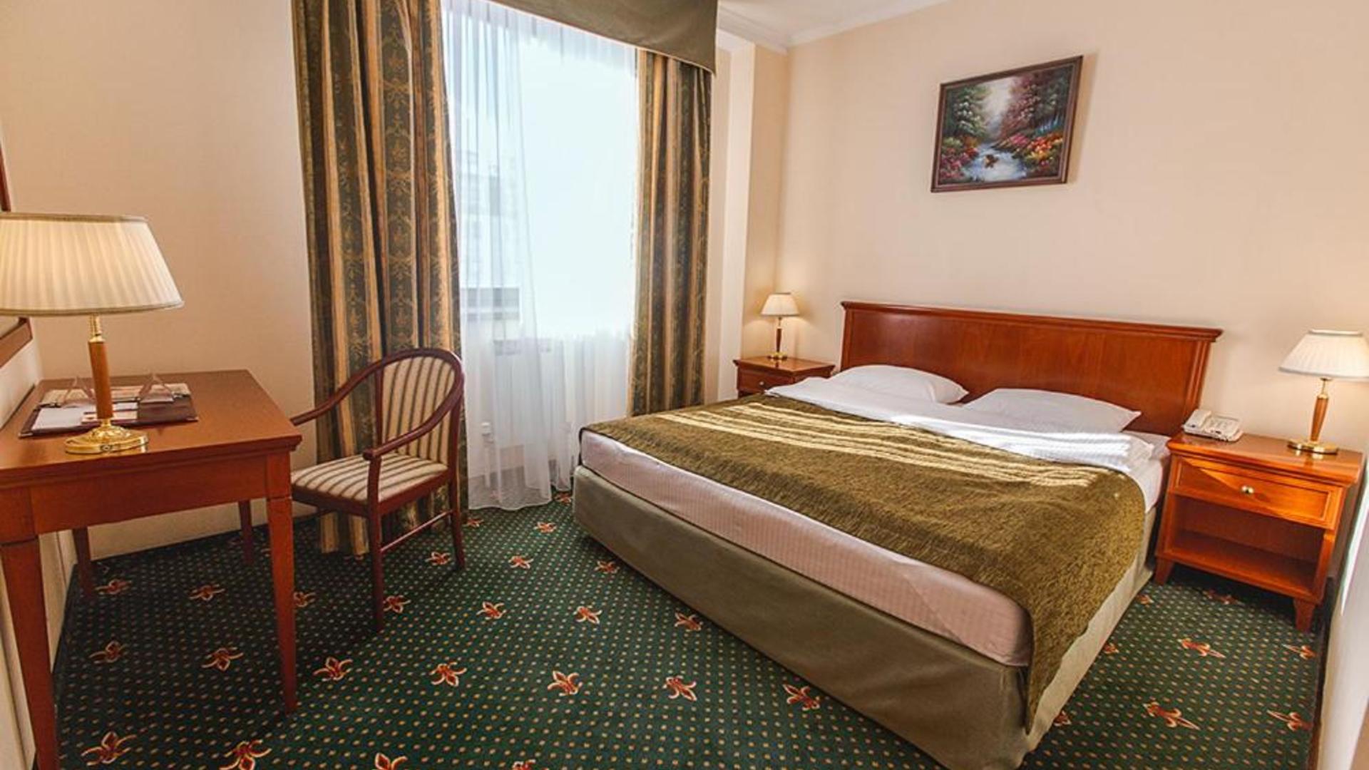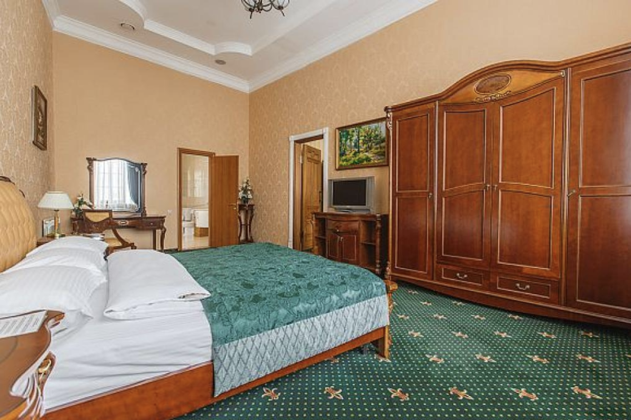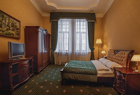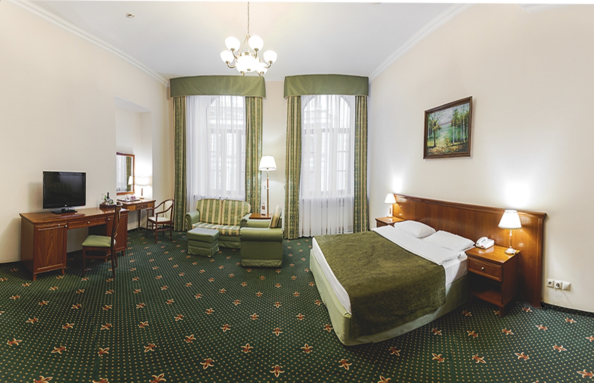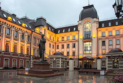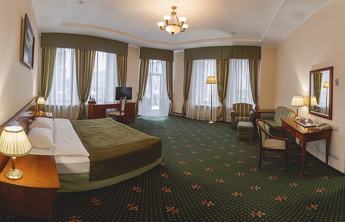 До главного железнодорожного вокзала Казани около 3 километров, а до международного аэропорта — 26.Отель разместился на закрытой благоустроенной территории в четырехэтажном историческом особняке с мансардным этажом. Гостей ожидают 123 двухместных номера категории Стандарт и Джуниор Сьют. Интерьеры номеров выдержаны в классическом стиле, каждая комната укомплектована качественным мебельным гарнитуром и необходимой техникой. В просторных санузлах установлены ванные, гостей ожидают традиционные наборы косметических принадлежностей. При отеле работают ресторан «Капелла» на 100 посадочных мест и уютный «Piano Bar», торжественные мероприятия, банкеты, можно провести в Зимнем саду. На первом и втором этажах отеля располагается современный фитнес-центр с тренажерным залом, сауной и бассейном, в центре регулярно проходят занятия с инструкторами. В распоряжении гостей беспроводной интернет, парковка, на ресепшене можно заказать трансфер, вызвать такси или приобрести экскурсии и билеты в театры и музеи. Для проведения деловых мероприятий в отеле предусмотрено несколько конференц-залов, названных в честь великих русских писателей и музыкантов. Залы оснащены современной мультимедийной техникой — есть проекторы, звуковая аппаратура, компьютеры и ноутбуки.