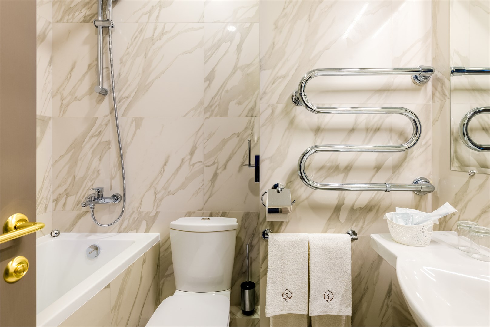 Санузел: биде, с ванной, тапочки, туалетные принадлежности, фен
