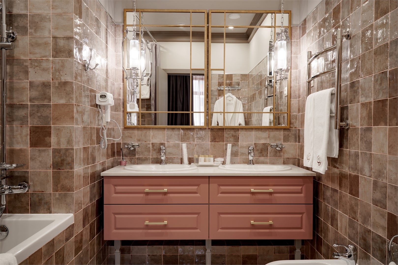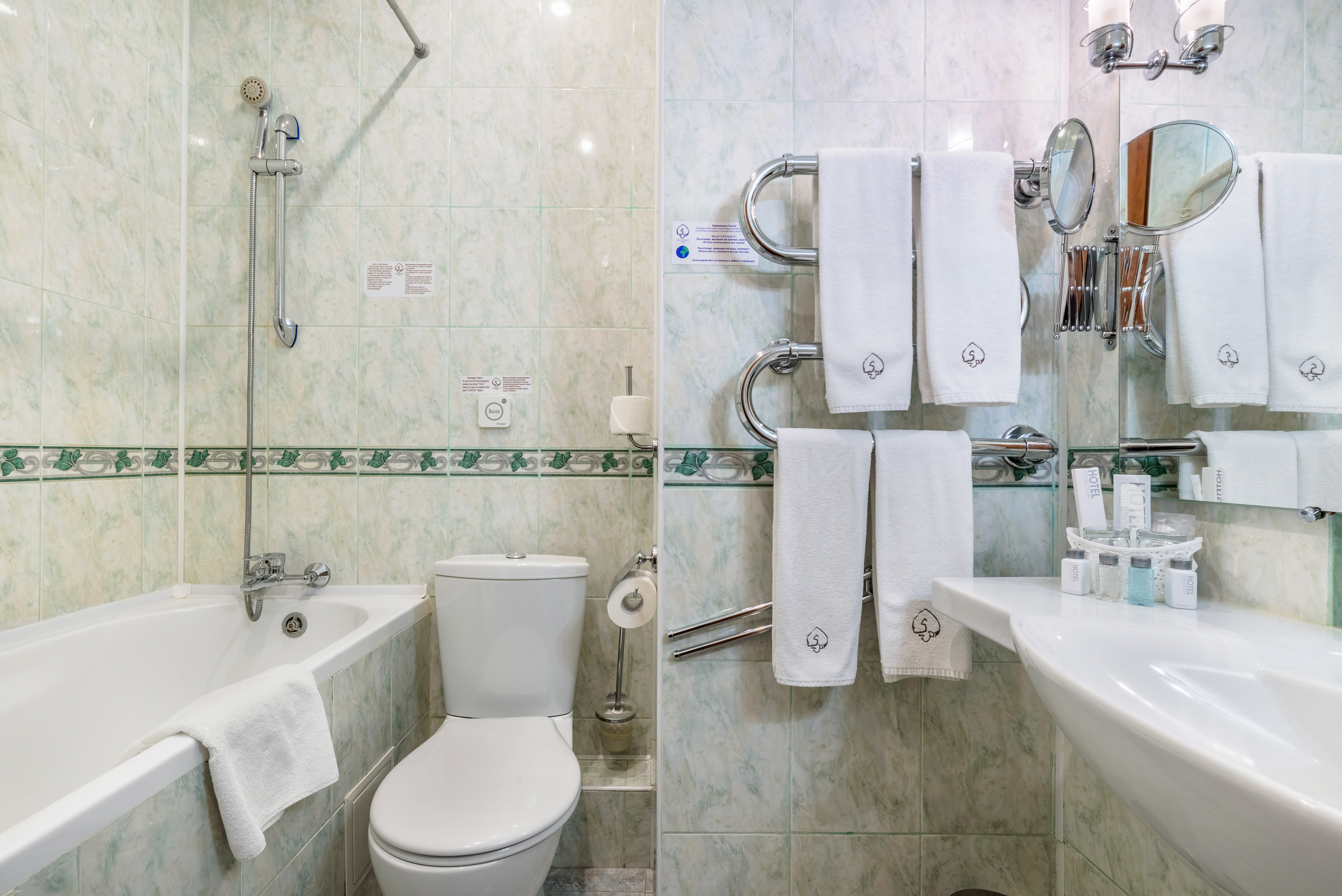 Санузел: с ванной, туалетные принадлежности, фен, халат