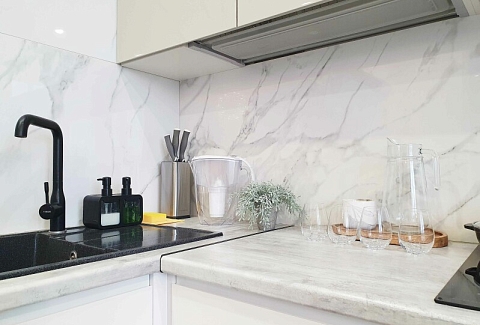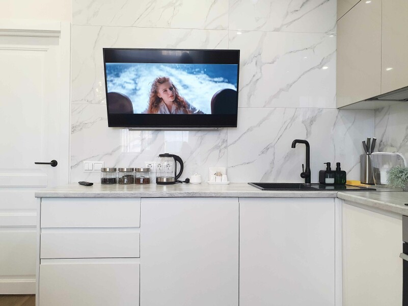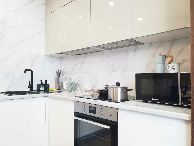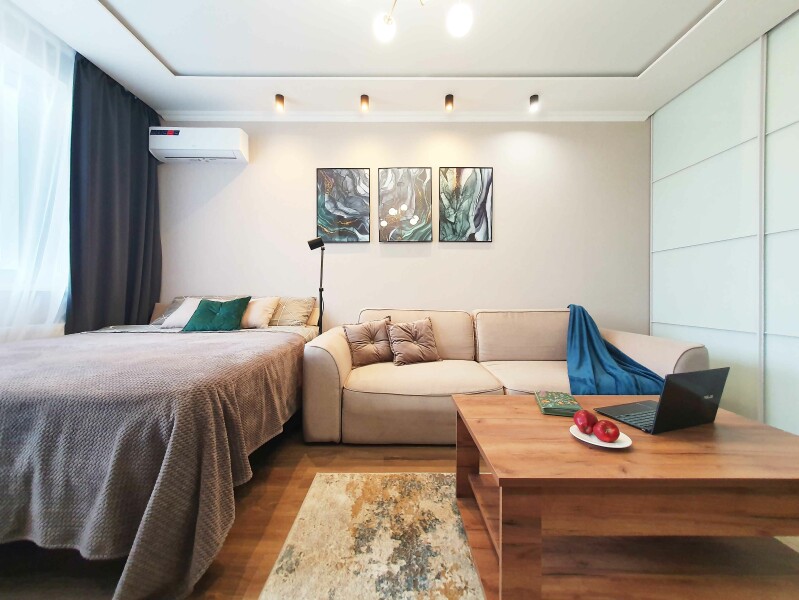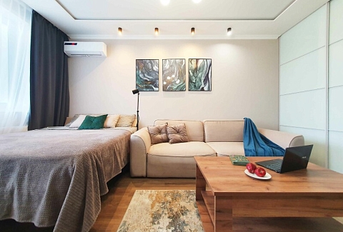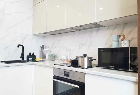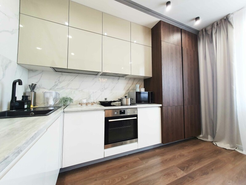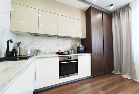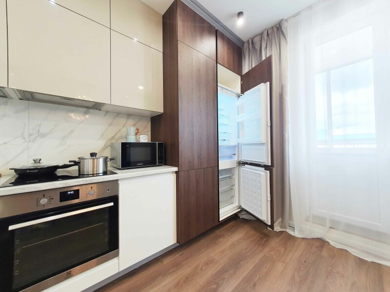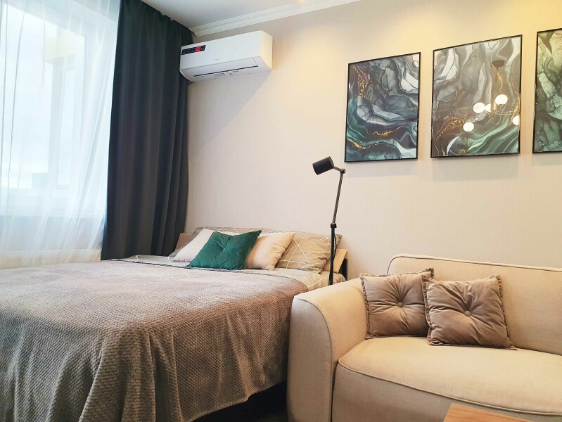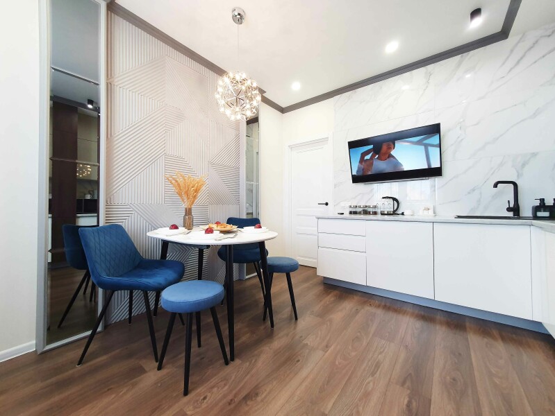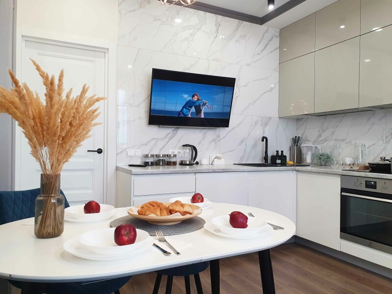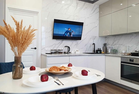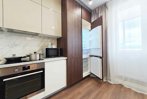 В распоряжении гостей двухместный номер с лаконичным современным интерьером, оформленным в светлых оттенках. В комнатах – комфортабельная мебель, кондиционер, телевизор, в санузле – ванна и косметические принадлежности для отдыхающих, в кухне – индукционная плита, микроволновая печь и вся необходимая посуда. Среди услуг – безлимитный интернет, который позволить гостям всегда оставаться на связи.