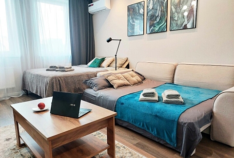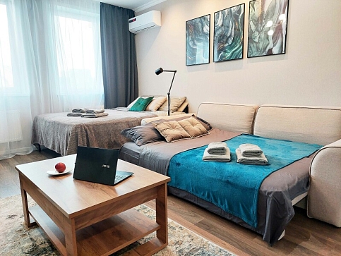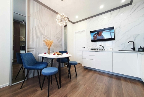 Апартаменты расположены в Ново-Савинском районе Казани возле АК Барс Арены. Вблизи проходят главные магистрали района, работают кафе, гипермаркеты и торговые центры, в шаговой доступности – аквапарк «Ривьера». До центра города, Казанского Кремля, Старо-Татарской слободы и прочих достопримечательностей можно доехать за 15 минут, а дорога до аэропорта займет около получаса.Многоэтажное жилое задние, в котором разместились апартаменты, возвышается в тихом районе на улице Адоратского.