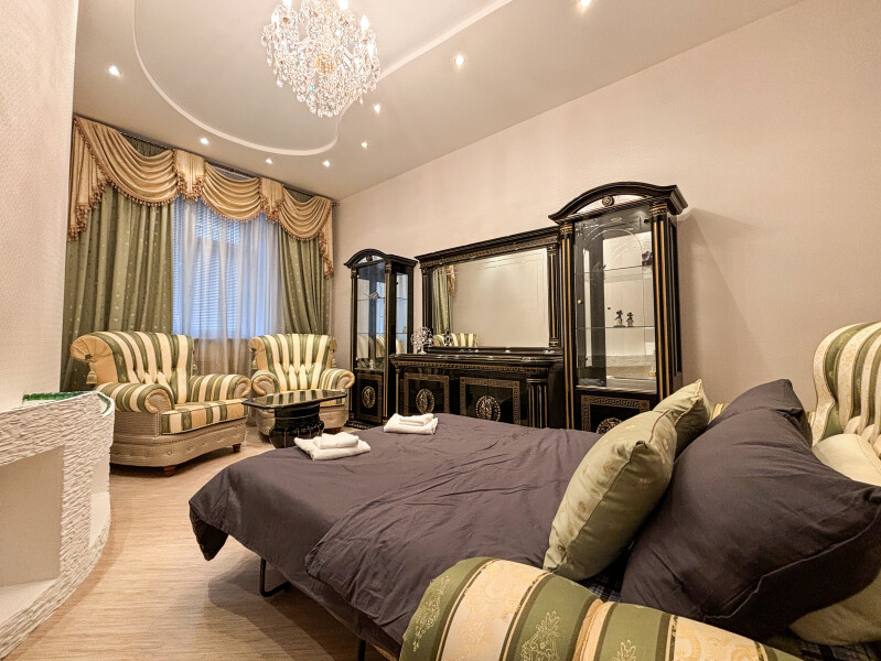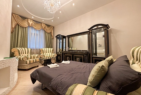 Апартаменты расположены в Советском районе Казани. Рядом – парковые зоны, продуктовые магазины, супермаркеты, остановки общественного транспорта, до центра города и главных достопримечательностей: Казанского Кремля, мечети Кул-Шариф, Старо-Татарской слободы можно доехать за 15 минут.Апартаменты разместились в современном жилом здании на улице Попова. В распоряжении гостей просторный 5-ти комнатный номер со стильными классическими интерьерами Апартаменты оснащены кухней с электрической плитой, микроволновой печью и другой техникой, в номере 2 санузла, есть фен и косметические принадлежности для гостей.