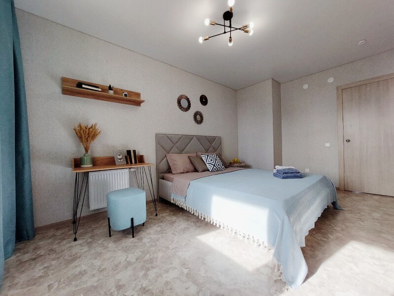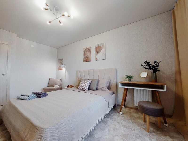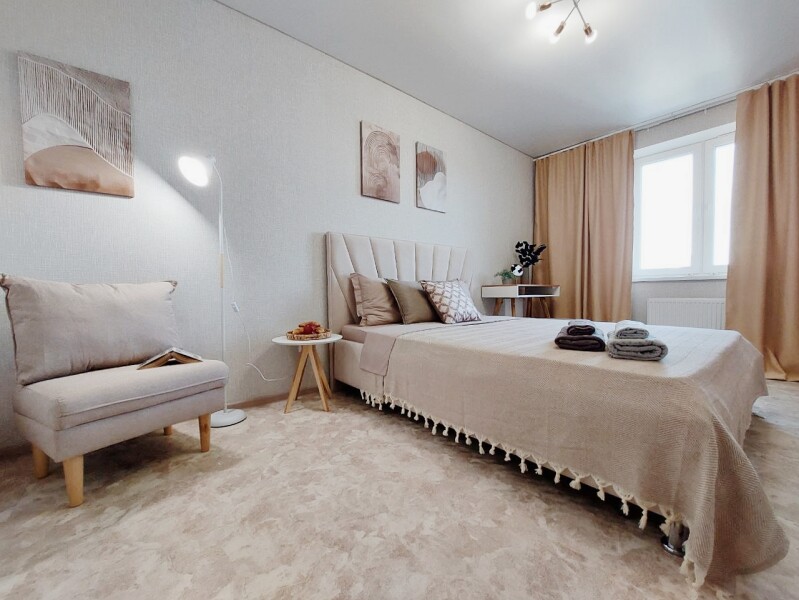 Апартаменты сети «UTrip» расположены в Казани, предлагая своим гостям уникальное сочетание городского комфорта и природной гармонии. Новый жилой комплекс всего в десяти минутах неспешной прогулки от лесного массива и живописного озера создает идеальные условия для тех, кто ценит единение с природой, не отказываясь от преимуществ центрального расположения. Открытый двор с парковкой общего доступа обеспечивает удобство для автовладельцев, а расстояние в 20 километров до аэропорта делает путешествие легким и комфортным.На десятом этаже гостей ждет продуманное пространство для отдыха и восстановления сил — три уютные комнаты готовы принять компанию до шести человек.