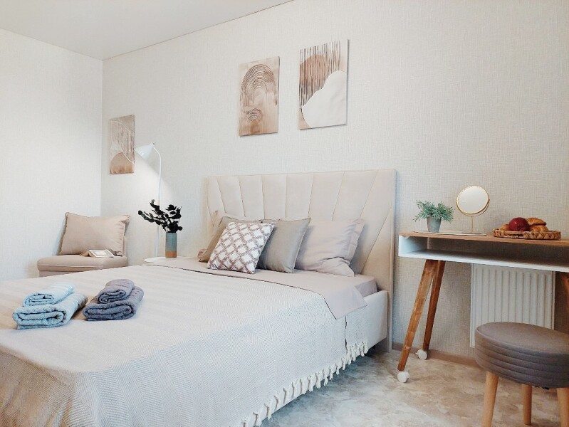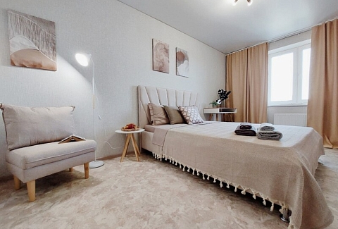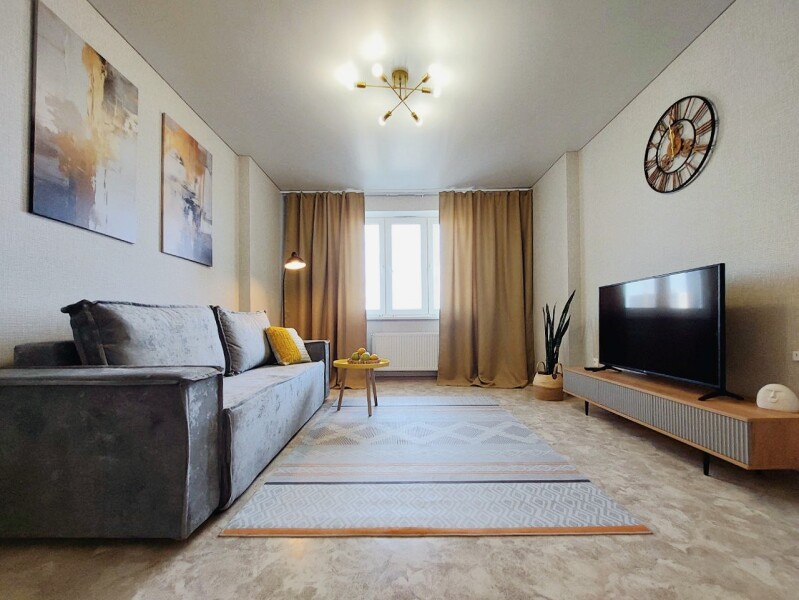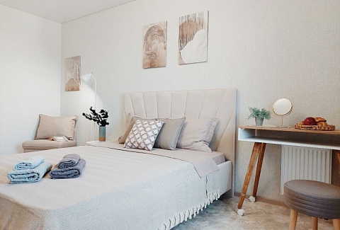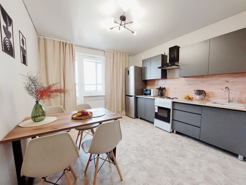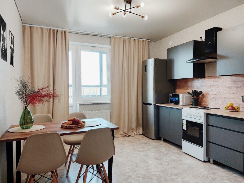 Шесть подготовленных спальных мест с двумя двуспальными кроватями и раскладывающимся диваном, застеленные свежим бельем, обеспечивают комфортный ночной отдых. Современный интерьер с вниманием к деталям создает атмосферу уюта и гармонии.Для приятного пребывания в апартаментах созданы все условия — кухня с электрической плитой и полным набором посуды позволяет готовить любимые блюда, а стиральная машина и вся необходимая бытовая техника решают повседневные задачи. Высокоскоростной Wi-Fi обеспечивает стабильное соединение для работы и развлечений, делая пребывание в апартаментах одновременно продуктивным и расслабляющим. Это пространство становится идеальным выбором для тех, кто ищет баланс между активным городским ритмом и возможностью уединения в гармонии с природой.