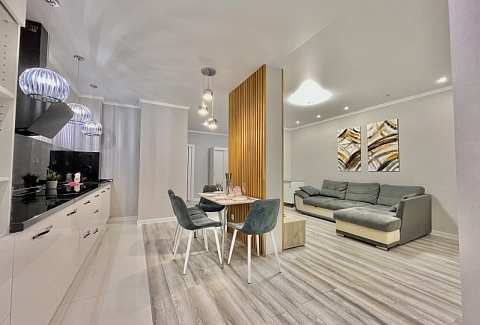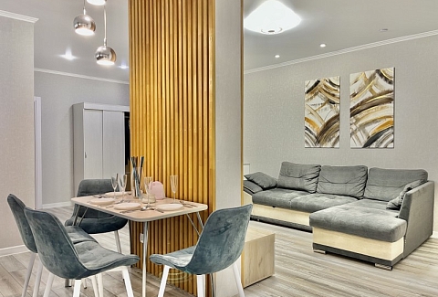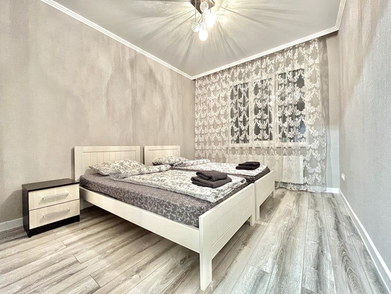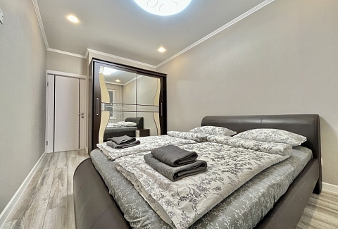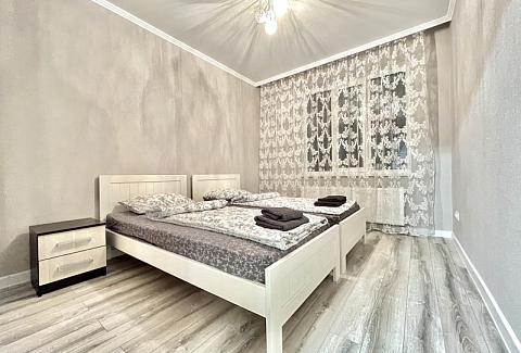Апартаменты расположены в Советском районе Казани. Рядом – парковые зоны, продуктовые магазины, супермаркеты, станция метро Аметьевская и остановки общественного транспорта, недалеко расположились торговый центр «Мега» и Казань-Молл, до центра города и главных достопримечательностей: Казанского Кремля, мечети Кул-Шариф, Старо-Татарской слободы можно доехать за 15 минут.Апартаменты находятся в современном многоэтажном здании в новом жилом квартале города. В распоряжении гостей просторный 4-х местный номер со светлым интерьером, дополненным яркими деталями.