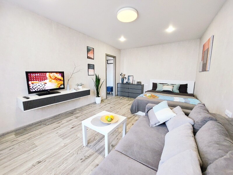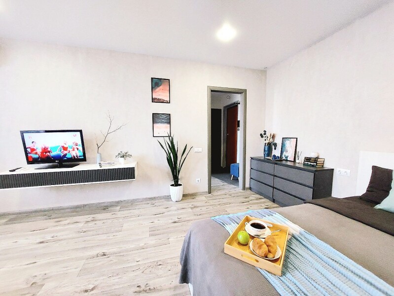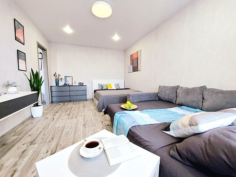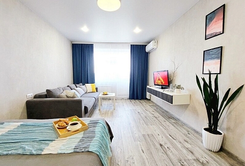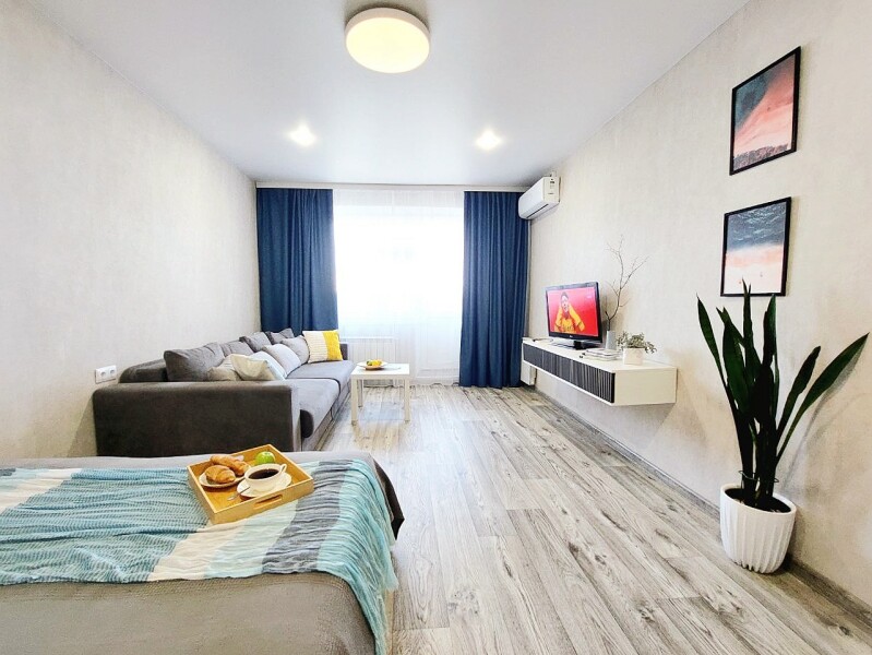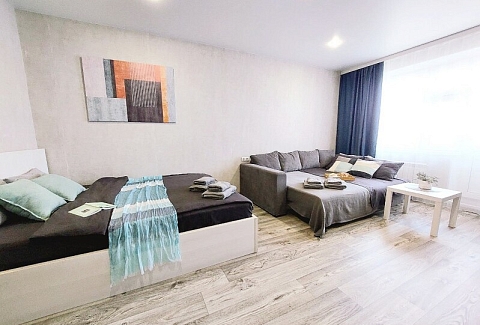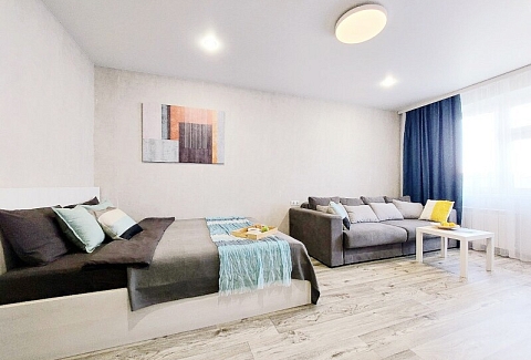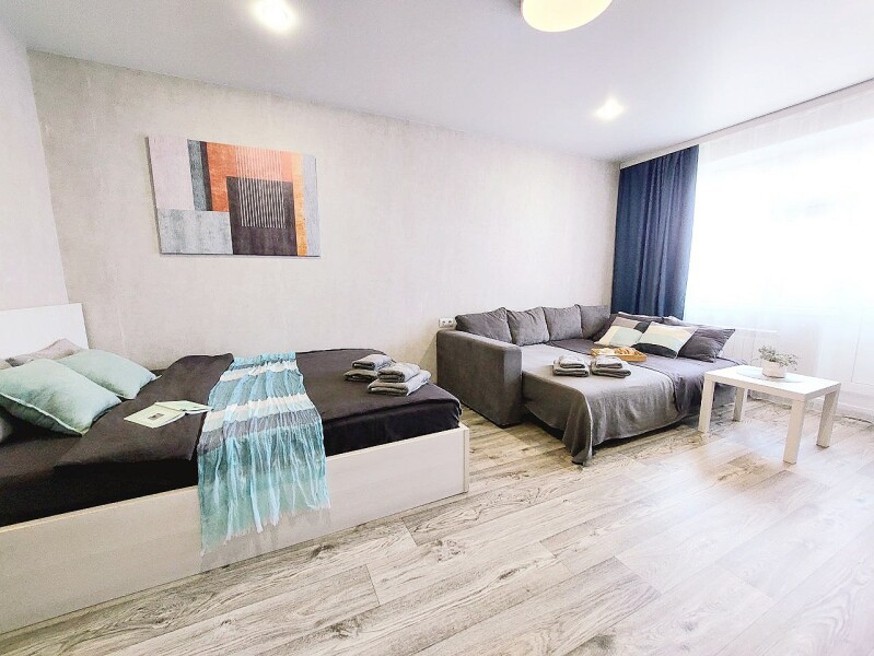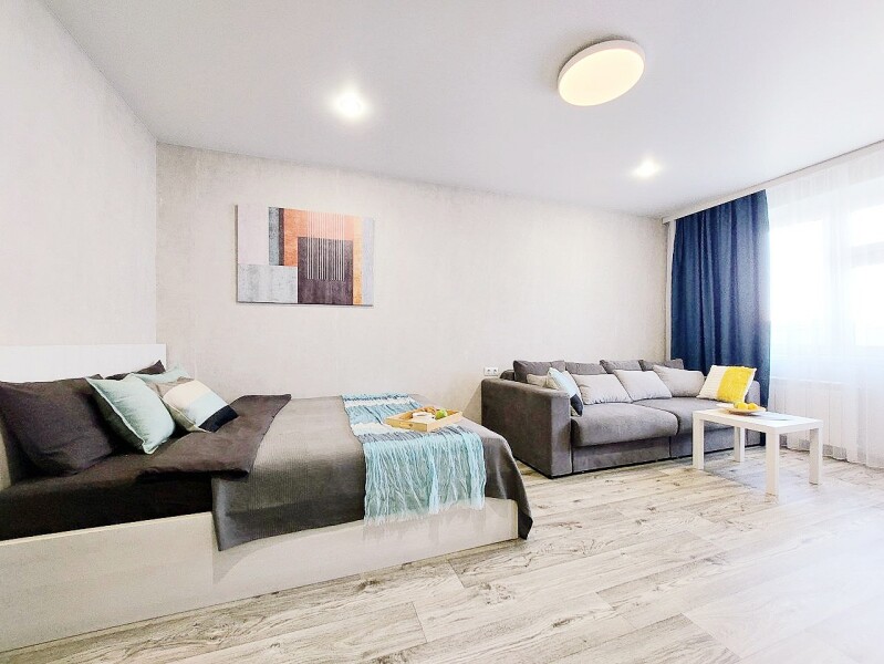 Апартаменты «UTrip» располагаются в 10 минутах езды от Казанского кремля. В микрорайоне находятся знаменитый загс «Казан» со смотровой площадкой, аквапарк, несколько крупных прогулочных зон, спортивных объектов, торговых центров.Минималистичные апартаменты, оформленные в сдержанной цветовой гамме, расположены в хорошо развитом жилом квартале. В спальне установлены кровать на двоих и большой диван, имеется выход на балкон.