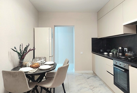 Парковка в закрытом дворе гарантирует безопасность для автомобиля, а станция метро «Козья слобода» и автобусные остановки в пяти минутах ходьбы делают передвижение по городу максимально удобным. Расстояние до аэропорта составляет 29 километров.На втором этаже гостей встречает пространство, наполненное итальянским шармом и элегантностью. Две просторные комнаты с продуманной планировкой готовы разместить до восьми гостей на двух двуспальных кроватях и двух раскладных диванах, что идеально подходит для семейного отпуска или поездки компании друзей. Интерьер в теплых, умиротворяющих тонах создает атмосферу уюта, а вид во двор добавляет ощущение уединения и гармонии, позволяя отдохнуть от городской суеты.Для безупречного пребывания здесь предусмотрено всё необходимое: аккуратная кухня с газовой плитой и полным набором техники, просторная ванная комната с ванной и стиральной машиной. Гостей ждут мягкие полотенца, фен, шампуни и свежее постельное белье, а система кондиционирования и высокоскоростной Wi-Fi обеспечивают современный уровень комфорта в любое время года. Эти апартаменты станут идеальным временным домом для тех, кто ценит гармонию эстетики, функциональности и спокойной атмосферы.