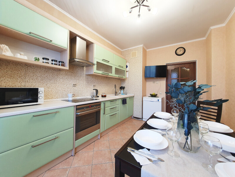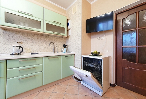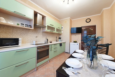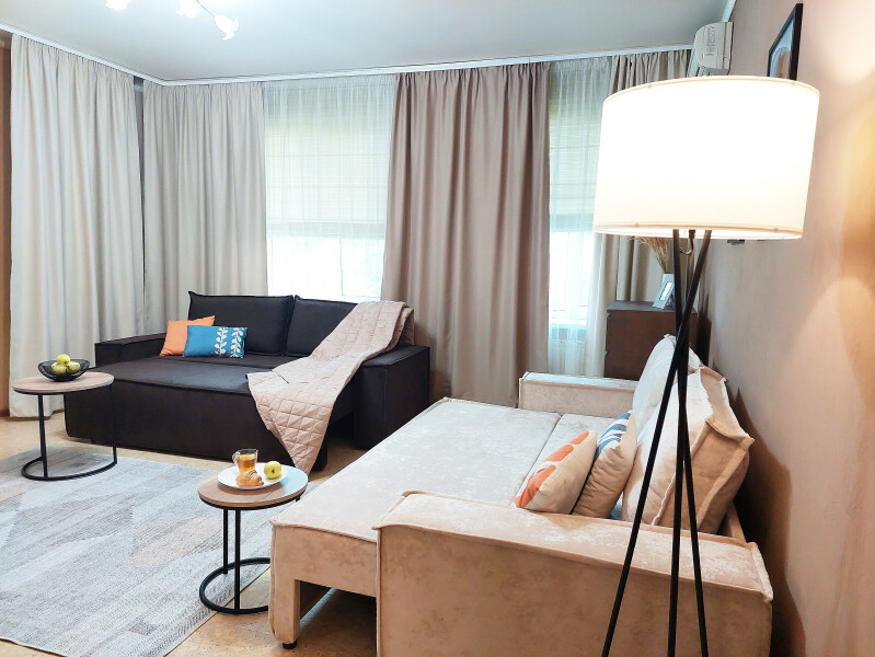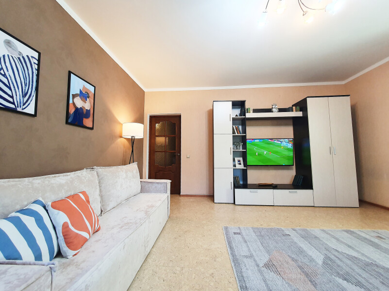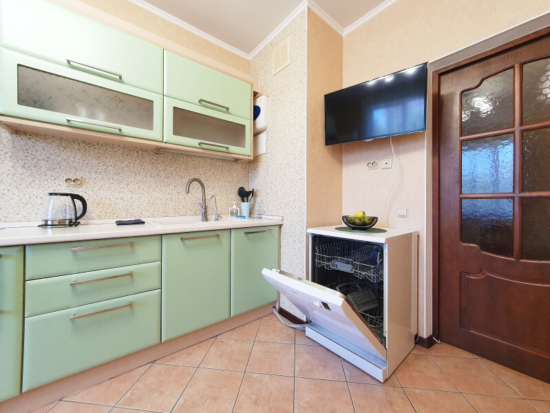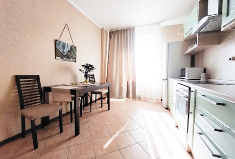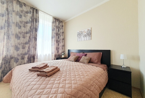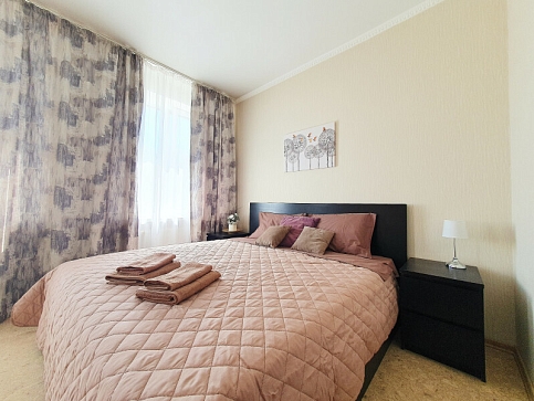 В комплексе обустроены детские и спортивные площадки, зоны отдыха у воды, парковки. В шаговой доступности работают несколько продуктовых магазинов и аптек.Апартаменты располагают 6 спальными местами: в изолированной спальне установлена двуспальная кровать, в просторной гостиной — 2 раскладных дивана. Кухня оснащена пространством для приготовления еды, посудомоечной машиной, обеденной группой. Санузел раздельный, имеются ванна и стиральная машина. Для гостей доступно подключение к Wi-Fi.