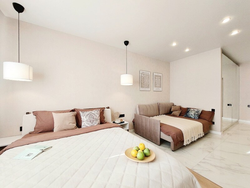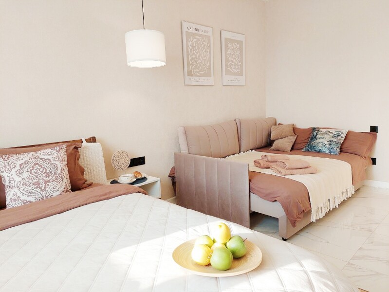 Парковка расположена за территорией комплекса. Станция метро «Козья слобода» находится в шаговой доступности, а расстояние до аэропорта составляет 26,6 километров.Стильная студия с авторским дизайном. Двуспальная кровать и диван обеспечивают полноценный отдых для небольшой компании или семьи. В апартаментах есть все необходимое: кухня с плитой и посудомоечной машиной, просторная ванная комната, стиральная машина. Мягкие полотенца, фен, шампуни и свежее постельное белье уже ждут своих гостей, а кондиционер и высокоскоростной Wi-Fi дополняют картину современного комфорта. Эти апартаменты станут идеальным выбором для тех, кто ценит гармонию эстетики и функциональности, желая наслаждаться каждым моментом пребывания в Казани.