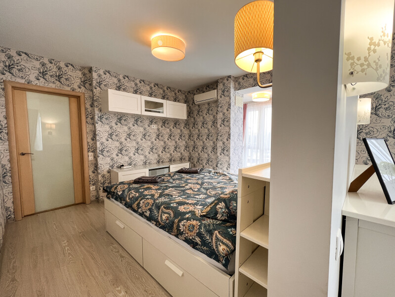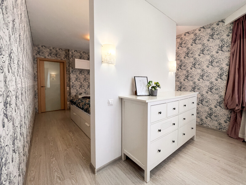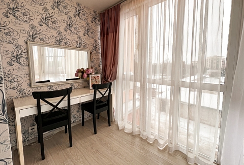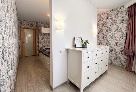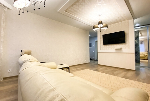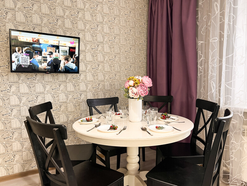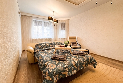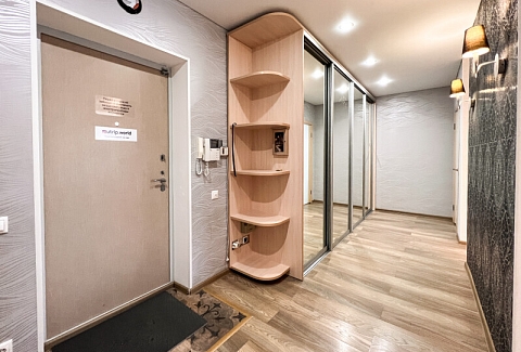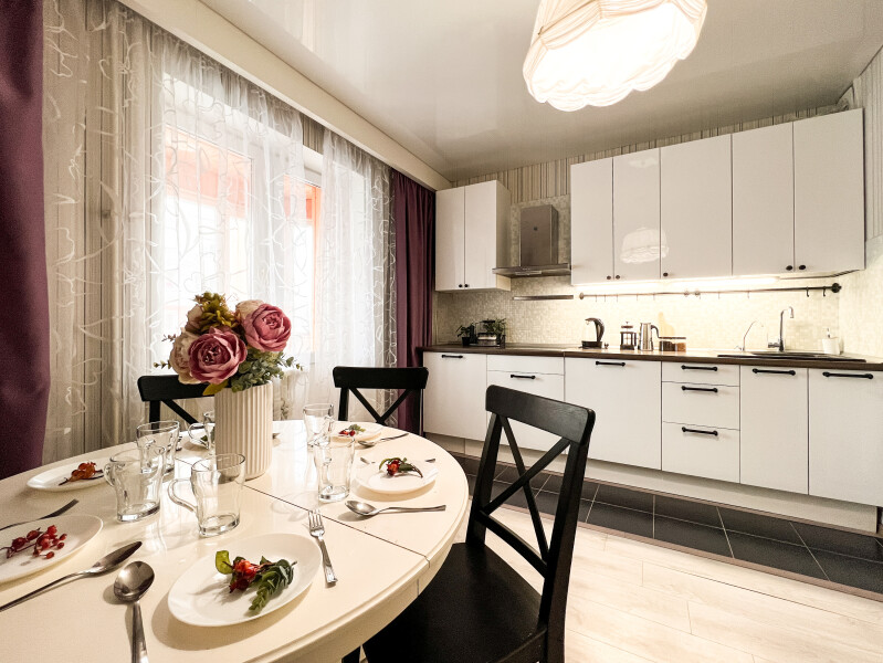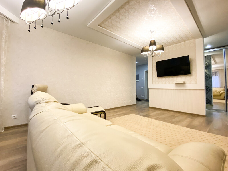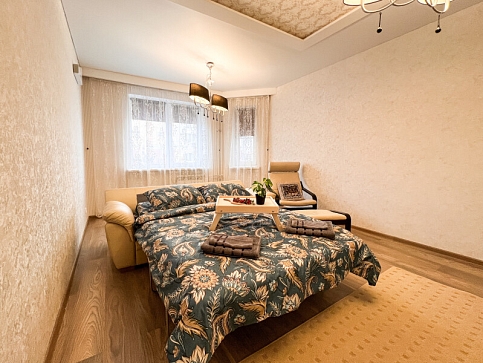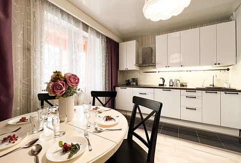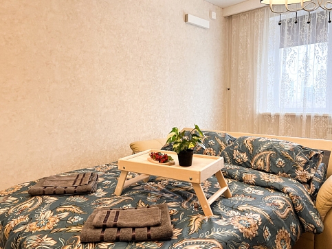 На первом этаже открыты магазины и кофейня, во дворе обустроены детские и спортивные площадки, парковки.В изолированной спальне установлена двуспальная кровать, в просторной гостиной — раскладной диван. Кухня оснащена пространством для приготовления еды, посудомоечной машиной, обеденной зоной. Прихожая располагает вместительным шкафом-купе с большими зеркалами. Совмещенный санузел укомплектован ванной и стиральной машиной. Гости могут подключиться к Wi-Fi.
