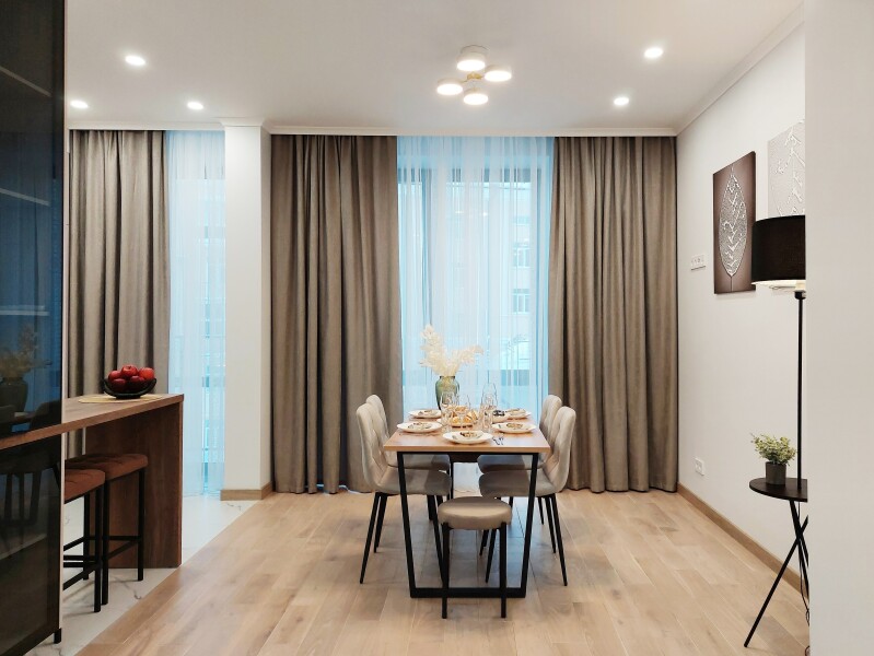 Пространство полностью оборудовано для длительного проживания: функциональная кухня с индукционной плитой и посудомоечной машиной, просторная ванная комната с ванной и стиральной машиной. Гостей ждут все необходимые детали для комфорта — от качественных полотенец и фена до шампуней и свежего постельного белья. В апартаментах установлен кондиционер и проведен высокоскоростной Wi-Fi. Для автомобилей доступен подземный паркинг, а при заселении предусмотрен возвращаемый залог. Это место идеально подходит для тех, кто хочет почувствовать атмосферу старой Казани, не отказываясь от современных удобств.