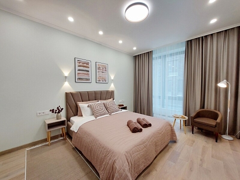 Сеть апартаментов «UTrip» расположены в самом сердце Казани, на улице, которую часто называют «Казанскими Патриками» — в окружении богатой истории и культурной жизни города. В нескольких шагах от апартаментов находятся театр Камала, живописный Парк Тысячелетия и оживленная пешеходная улица Баумана, а неспешная прогулка до величественного Кремля займет не более 20 минут. Расстояние в 26 километров до аэропорта делает прибытие и отъезд гостей комфортными.Стильные и уютные трехкомнатные апартаменты расположены в современном жилом комплексе с закрытым внутренним двором, а из окон открывается вид на историческую часть города.