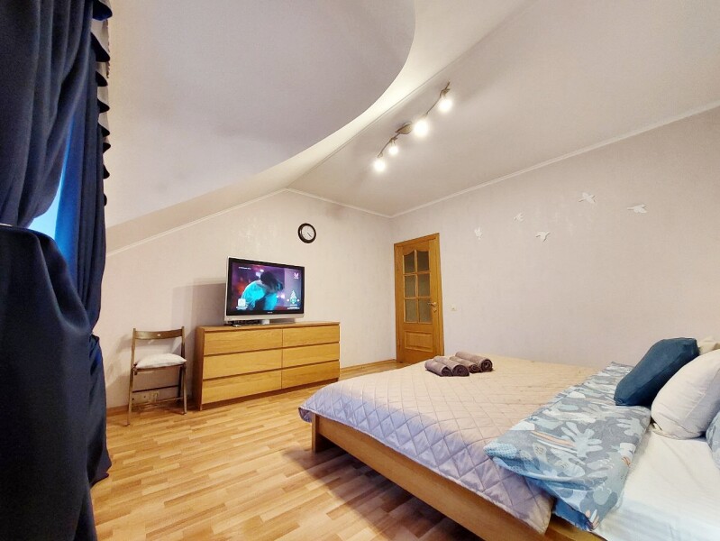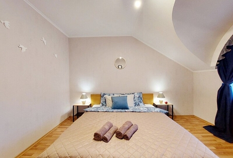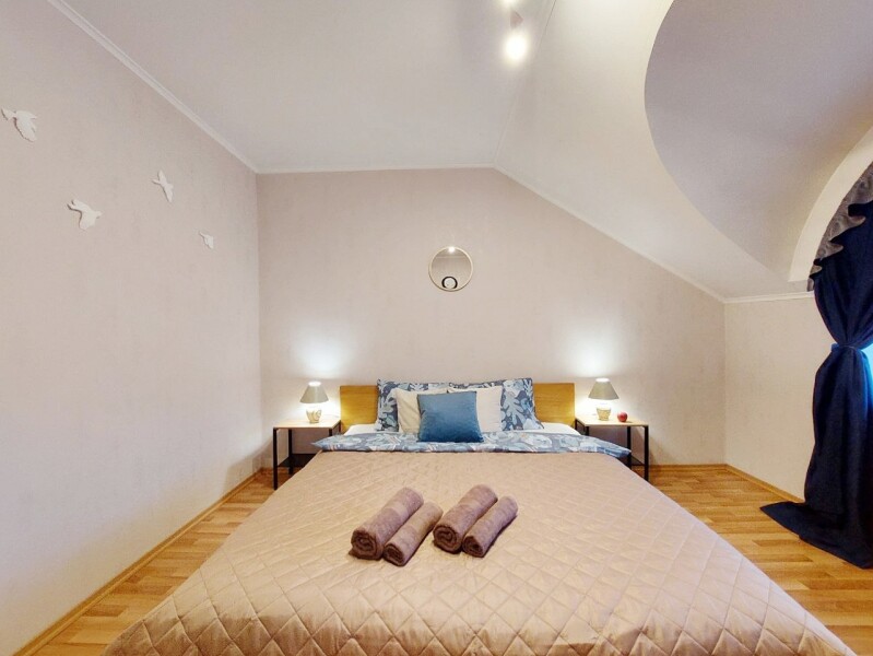 Две двуспальные и одна односпальная кровати вместе с двумя раскладными диванами создают все условия для отдыха дружной компании или большой семьи.Для приятного пребывания здесь предусмотрено все необходимое: полностью оснащенная кухня с газовой плитой и посудомоечной машиной, просторная ванная комната с ванной и стиральной машиной. Гостей встречают свежее постельное белье, мягкие полотенца, фен и шампуни, а система кондиционирования и высокоскоростной Wi-Fi обеспечивают современный уровень комфорта для работы и отдыха.