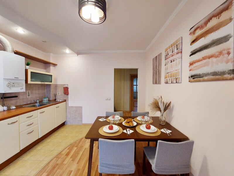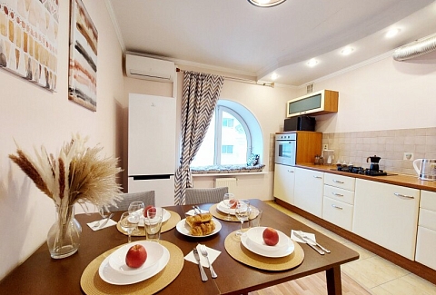Апартаменты сети «UTrip» расположены в самом сердце Казани, всего в 26 километрах от аэропорта, предлагая гостям идеальное сочетание центрального расположения и превосходной транспортной доступности. Станция метро «Площадь Тукая» находится в нескольких шагах, делая все ключевые достопримечательности города легко доступными. Закрытый двор создает ощущение уединения, а парковка общего доступа решает вопрос с размещением автомобиля.На пятом этаже гостей ждет просторное трехкомнатное пространство, способное комфортно разместить компанию до девяти человек.