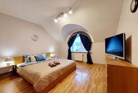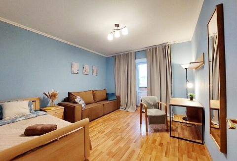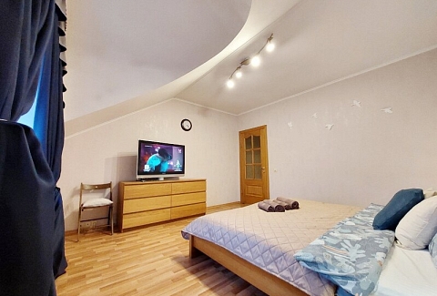 В номере: вешалка, диван раскладной, зеркало, кровать двуспальная, кровать односпальная, кухонная мебель, прикроватные столики, прикроватные тумбочки, стол, столик журнальный, стол обеденный, стулья, шкаф, гладильная доска, духовой шкаф, кондиционер, микроволновая печь, набор посуды, плита газовая, посудомоечная машина, стиральная машина, сушилка для белья, телевизор ЖК, утюг, холодильник, чайный набор посуды, электрочайник