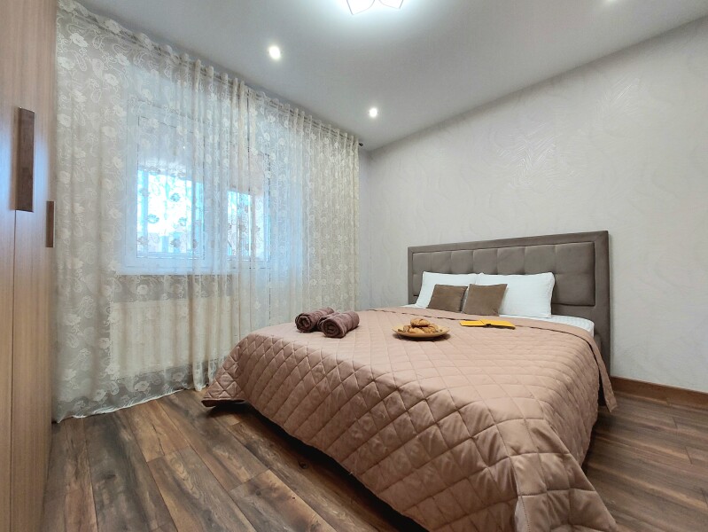 Парковка расположена за пределами закрытого двора, а расстояние до аэропорта состаляет 23 километра.Уютные трехкомнатные апартаменты с комфортабельными спальными местами — две двуспальные кровати и раскладывающийся диван готовы обеспечить полноценный отдых после насыщенного дня. Окна выходят во двор, где царит спокойная атмосфера, создающая ощущение уединения даже в самом сердце города. Пространство оформлено с вниманием к деталям, объединяя функциональность и домашний уют.Для гостей созданы все условия для приятного пребывания: компактная кухня оснащена всей необходимой техникой для приготовления любимых блюд, а современная ванная комната с душевой кабиной и стиральной машиной решает бытовые вопросы. Высокоскоростной Wi-Fi и система кондиционирования добавляют комфорта в любое время года, делая эти апартаменты идеальным выбором для тех, кто ценит гармонию городского ритма и личного пространства.