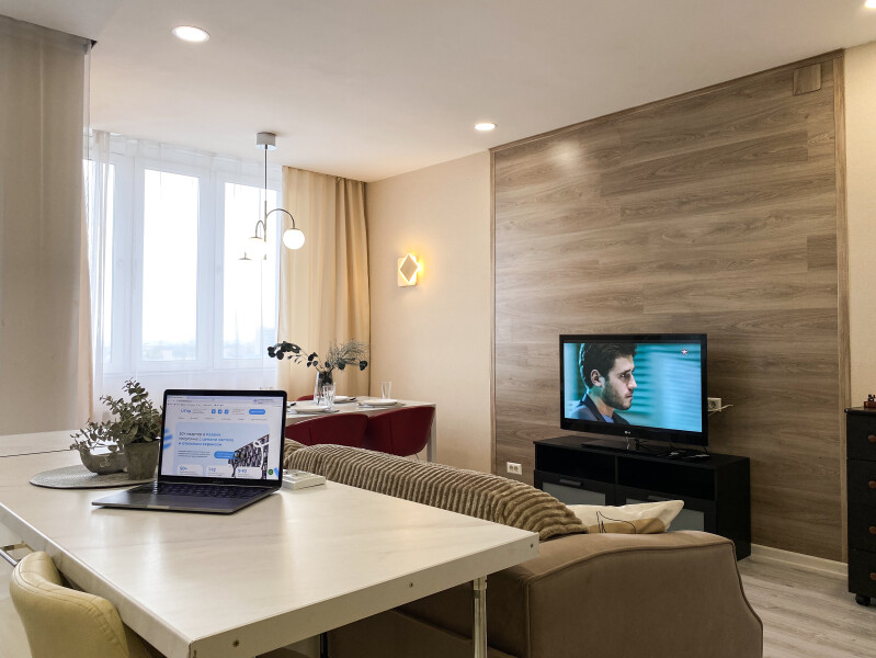 Сеть апартаментов «UTrip» располагается в сердце татарской столицы. Рядом находятся ТЦ «Кольцо», ГУМ, старинная колокольня, озеро Кабан, несколько театров, парков и музеев. Дойти к архитектурному ансамблю Казанского кремля можно за 30 минут.Светлые и вместительные апартаменты расположены в новом многоквартирном доме комфорт-класса.
