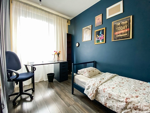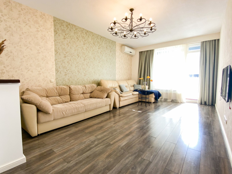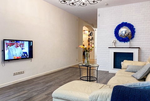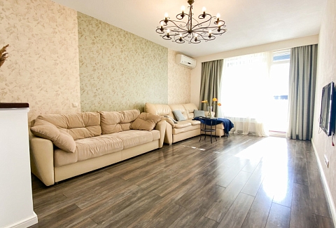 Территория ЖК оснащена современными детскими площадками и просторными автостоянками. В здании работают несколько кафе и продуктовых магазинов.В апартаментах предусмотрено 8 спальных мест: в одной спальне установлена двуспальная кровать, во второй — 2 односпальных, гостиная укомплектована 2 раскладными диванами. Кухня оборудована зоной для приготовления еды и столовым пространством. В наличии полный комплект бытовой техники, включая посудомоечную и стиральную машины. Обустроены 2 санузла, с ванной и душевой. Для гостей доступно подключение к Wi-Fi.