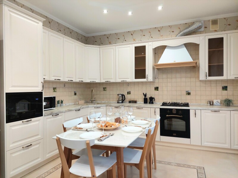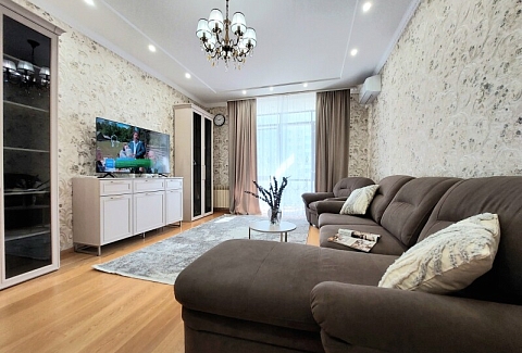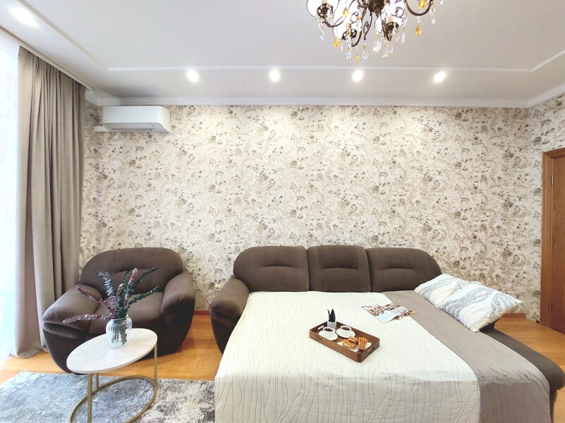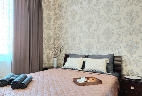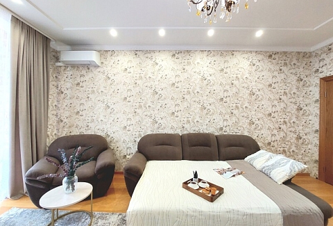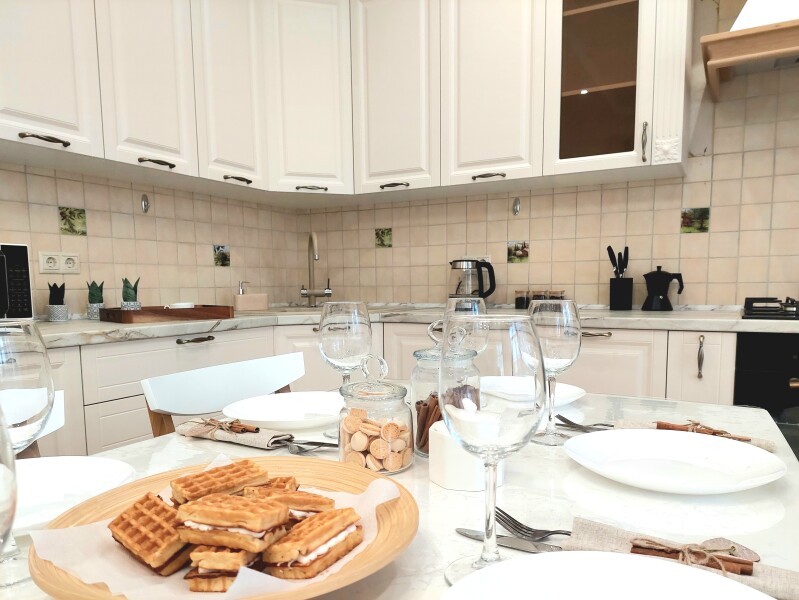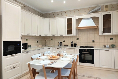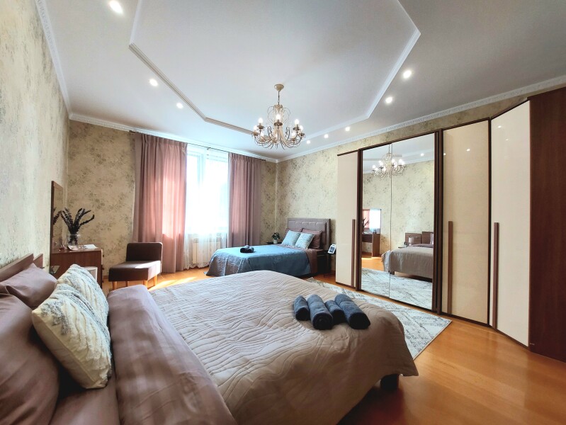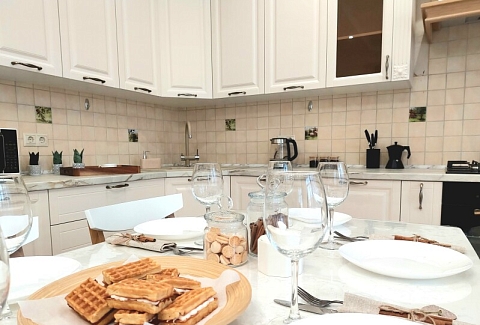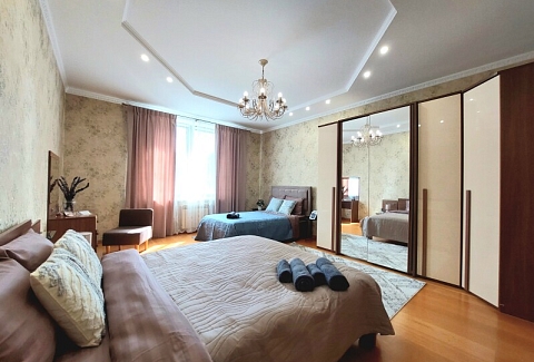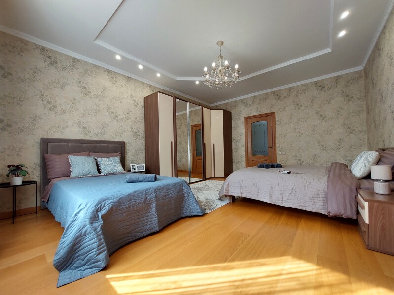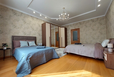 В номере: вешалка, диван, диван раскладной, зеркало, кресла, кровать двуспальная, кухонная мебель, прикроватные тумбочки, столик журнальный, столик туалетный, стол обеденный, стулья, шкаф, гладильная доска, духовой шкаф, кондиционер, микроволновая печь, набор посуды, плита газовая, посудомоечная машина, стиральная машина, сушилка для белья, телевизор ЖК, утюг, холодильник, чайный набор посуды, электрочайник
