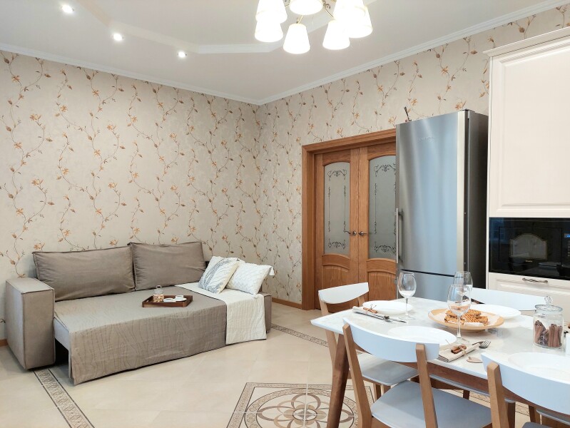 Апартаменты сети «UTrip» в Советском районе Казани предлагают просторное трёхкомнатное проживание на шестом этаже с видами на ухоженный двор и знаменитый Ипподром. Это идеальное решение для семейного отдыха с детьми, дружеской компании или деловой поездки — здесь созданы все условия для комфортного размещения до восьми гостей.Пространство организовано с учётом потребностей большой компании: три отдельные комнаты с тремя двуспальными кроватями и раскладным диваном обеспечивают комфортный ночной отдых, а так же в апартаментах два санузла. Просторная лоджия становится дополнительной зоной отдыха, откуда открываются панорамные виды на городскую жизнь.Для полного автономного проживания оборудована функциональная кухня с газовой плитой, духовым шкафом и посудомоечной машиной, дополненная полным набором посуды и современной бытовой техники.