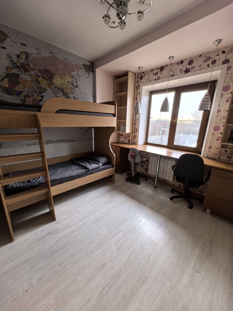 В номере: диван раскладной, кровать двухъярусная, стол, стулья, шкаф, микроволновая печь, набор посуды, плита газовая, стиральная машина, телевизор, холодильник, чайник