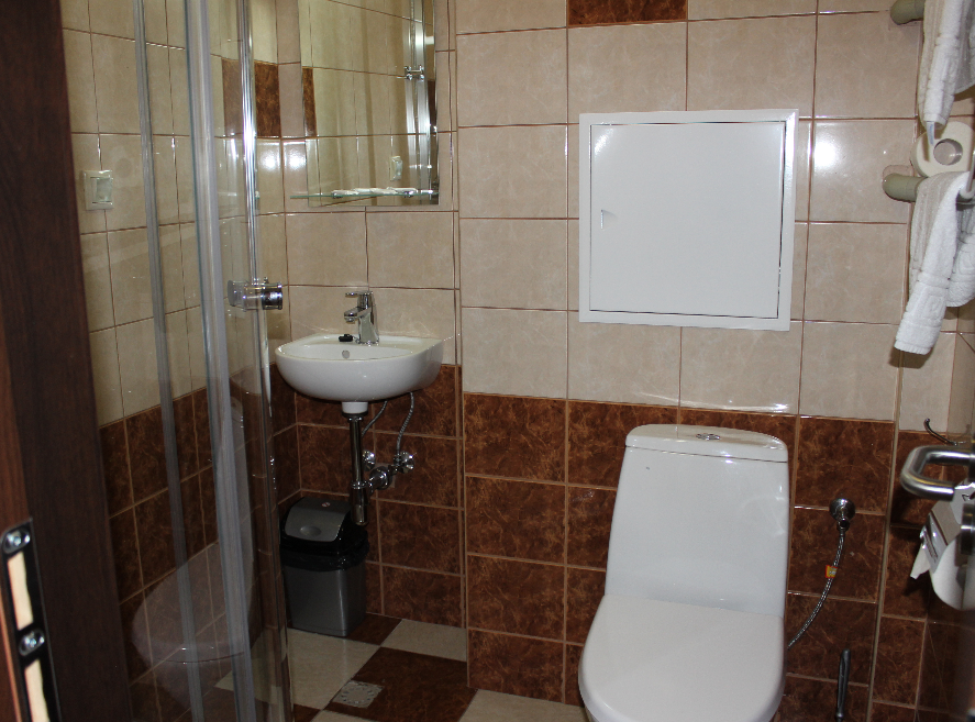 Санузел: с душевой кабиной, туалетные принадлежности, фен