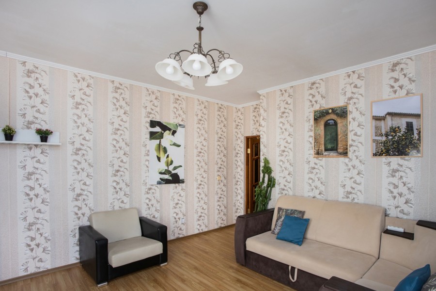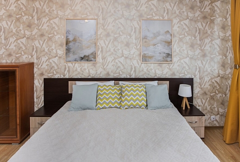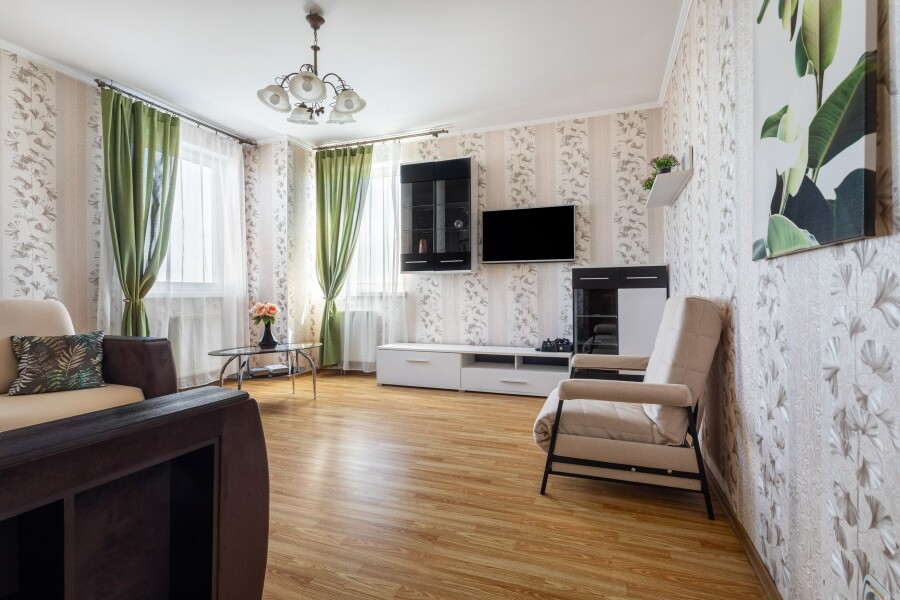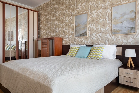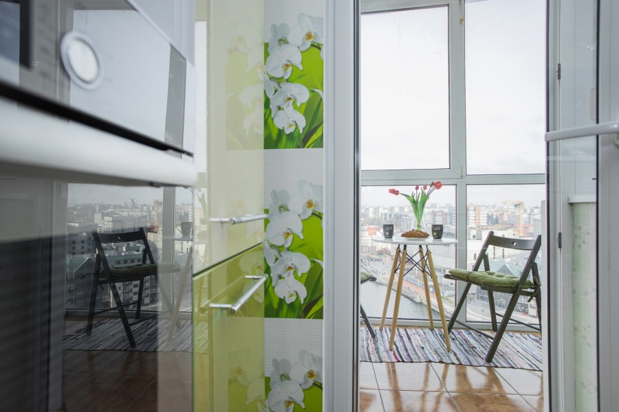 Номера с современным дизайном оснащены всем необходимым для комфортного проживания. Апартаменты состоят из 2 изолированных комнат, кухни и большой лоджии с панорамным остеклением, откуда открывается потрясающий вид на Рыбную деревню и остров Канта. Комнаты оборудованы всей необходимой мебелью, техникой, бытовой химией. На кухне предусмотрена бытовая техника для самостоятельного приготовления еды. Санузел с душевой кабиной, полотенцами и туалетными принадлежностями. Для личного транспорта есть парковка возле дома. По запросу предоставляется детская кроватка.