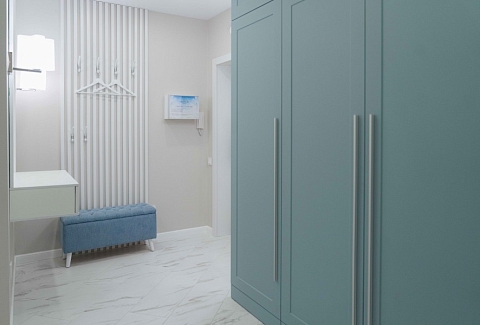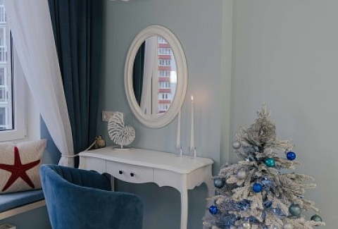 В номере: диван, зеркало, кресло, кровать двуспальная, стол, стулья, шкаф, гладильная доска, кондиционер, набор посуды, плита электрическая, стиральная машина, сушилка для белья, телевизор ЖК, утюг, холодильник, чайный набор посуды, электрочайник