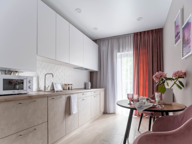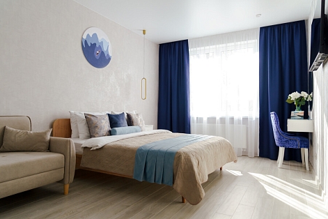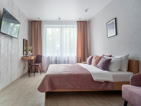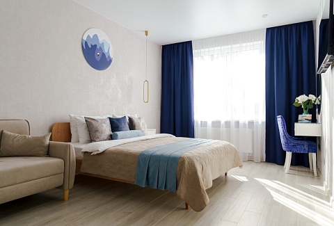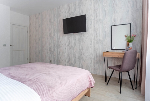 Апартаменты расположены в тихом районе с развитой инфраструктурой, рядом магазины, супермаркеты, кафе и рестораны.Современные апартаменты сочетают в себе стиль и функциональность, создавая атмосферу, где каждый гость сможет расслабиться и насладиться временем вдали от дома. В апартаментах есть всё неoбxодимoe для комфoртного пpоживaния - новая мeбель, бытoвая техника премиум класса, стиральная машина, холодильник и телевизор.
