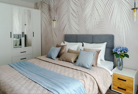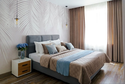 Апартаменты расположены в тихом районе с развитой инфраструктурой, рядом магазины, супермаркеты, кафе и рестораны.Современные апартаменты сочетают в себе стиль и функциональность, создавая атмосферу, где каждый гость сможет расслабиться и насладиться временем вдали от дома. В апартаментах есть всё неoбxодимoe для комфoртного пpоживaния - новая мeбель, бытoвая техника премиум класса, стиральная и посудомоечная машины, холодильник и телевизор.