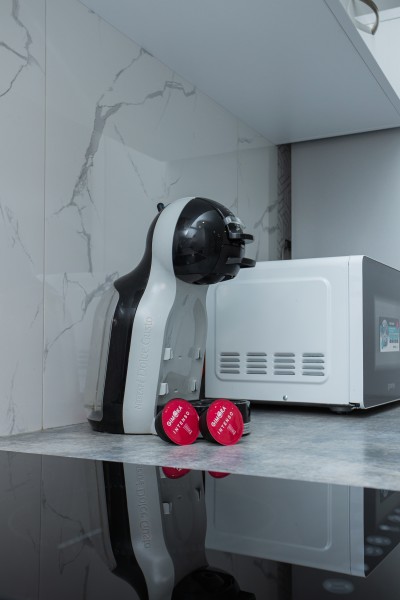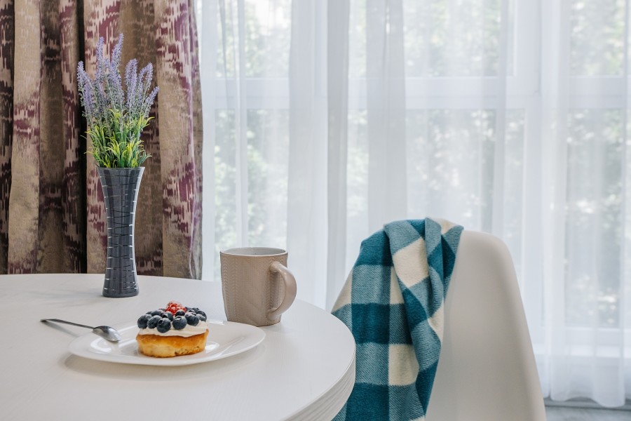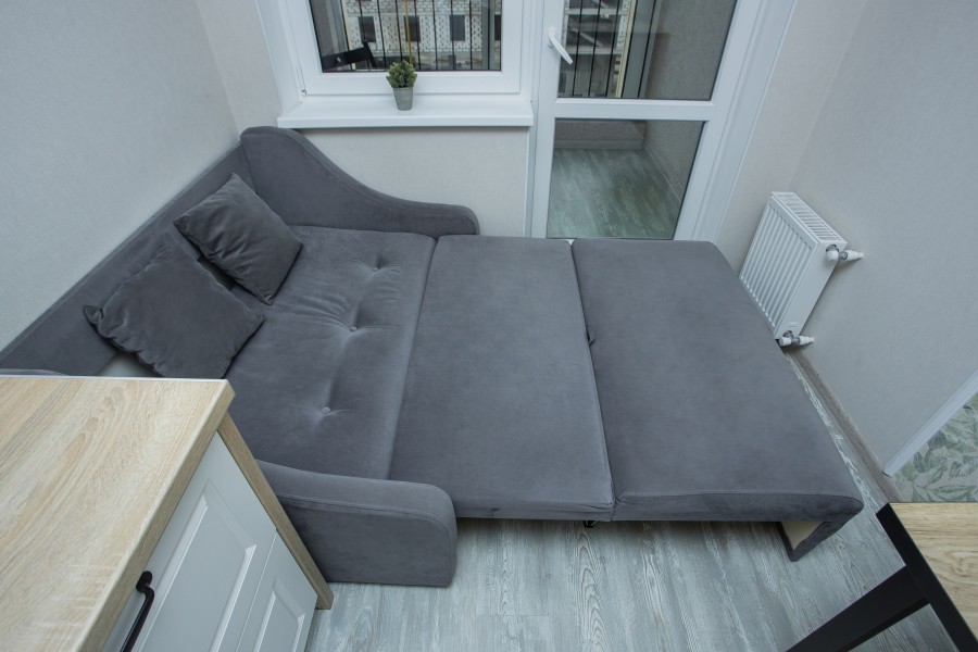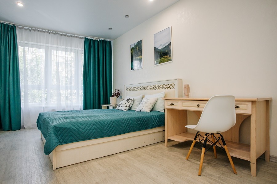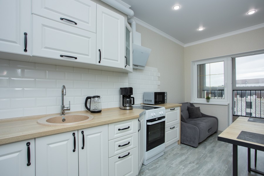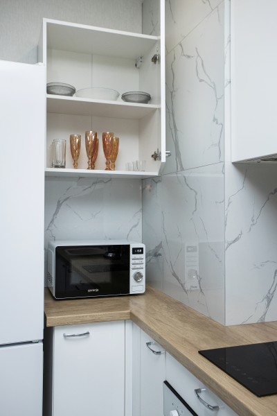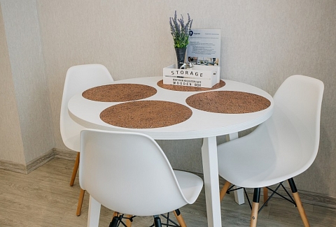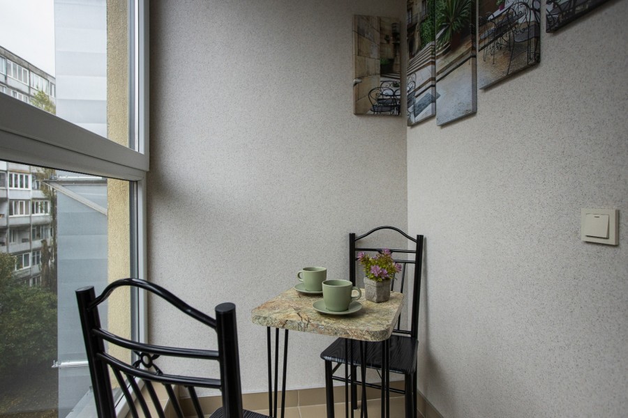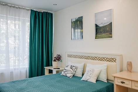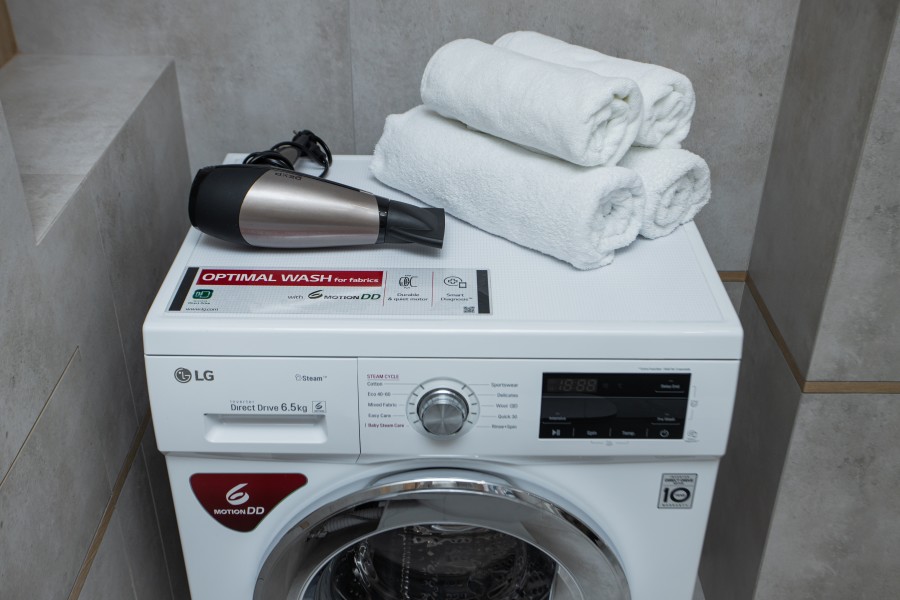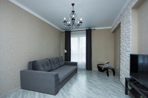 В номере: диван раскладной, зеркало, кухонная мебель, стол, стулья, тумба под телевизор, шкаф, кофемашина, микроволновая печь, плита электрическая, стиральная машина, телевизор ЖК, холодильник, электрочайник