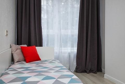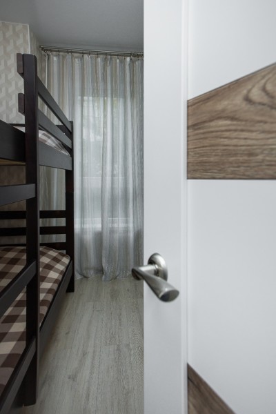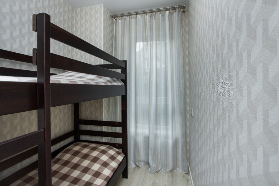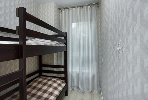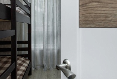 В номере: вешалка, диван раскладной, зеркало, кровать двуспальная, кровать двухъярусная, кухонная мебель, стол, столик журнальный, стулья, шкаф, кофемашина, микроволновая печь, набор посуды, плита электрическая, посудомоечная машина, стиральная машина, телевизор ЖК, холодильник, электрочайник